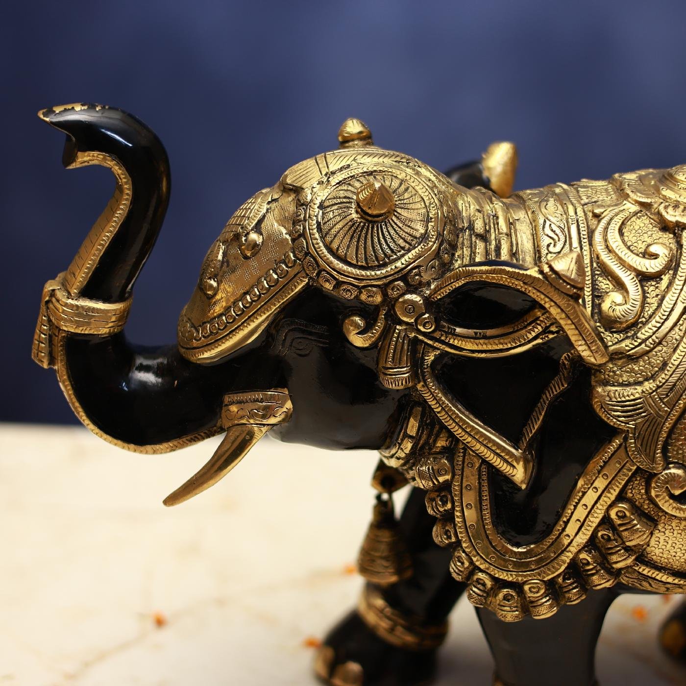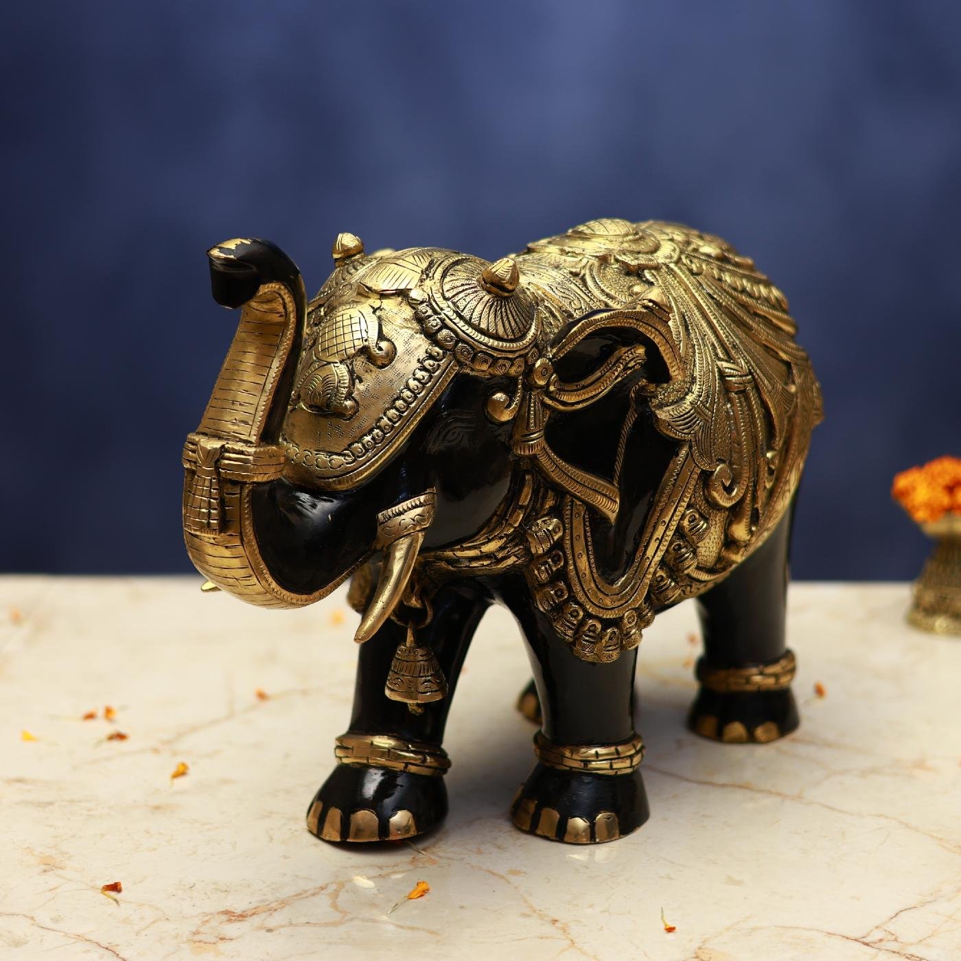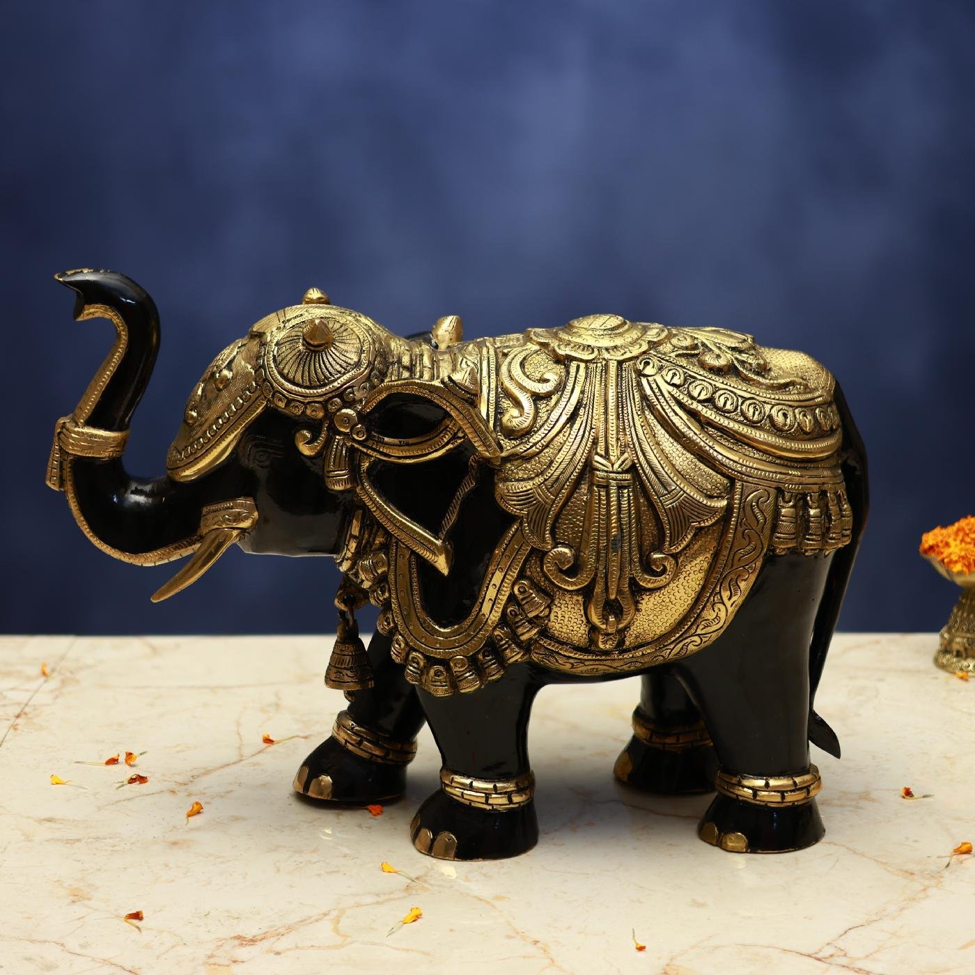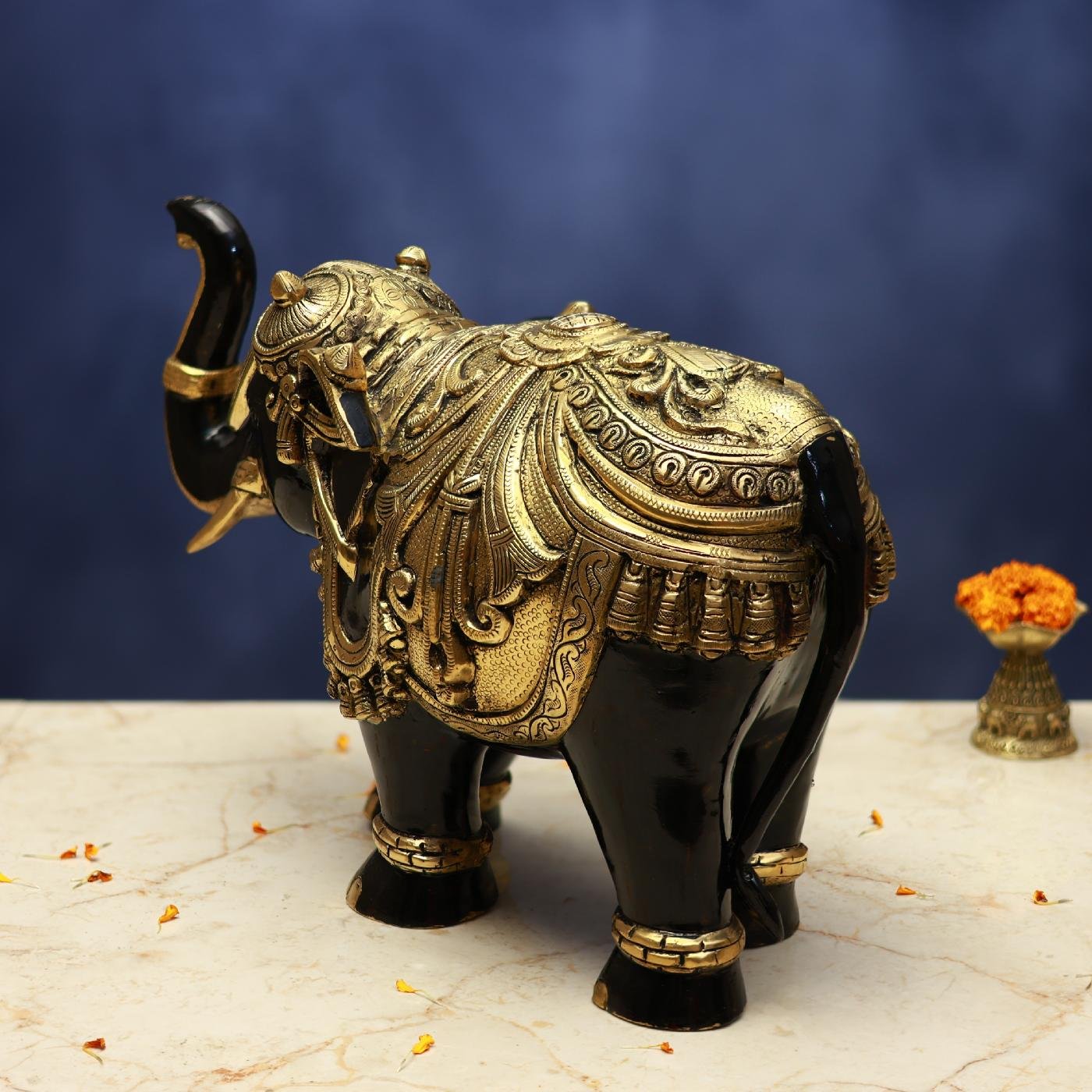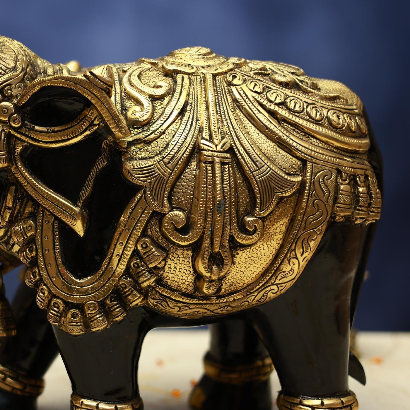 Enhance your space with the charm and symbolism of this 12-inch Brass Black Colour Elephant Pair Statue. Beautifully handcrafted with a rich black finish, this elegant pair represents strength, unity, wisdom, and good fortune. Perfect for home décor, office interiors, or vastu-inspired spaces, it adds a touch of sophistication and positive energy to any setting.