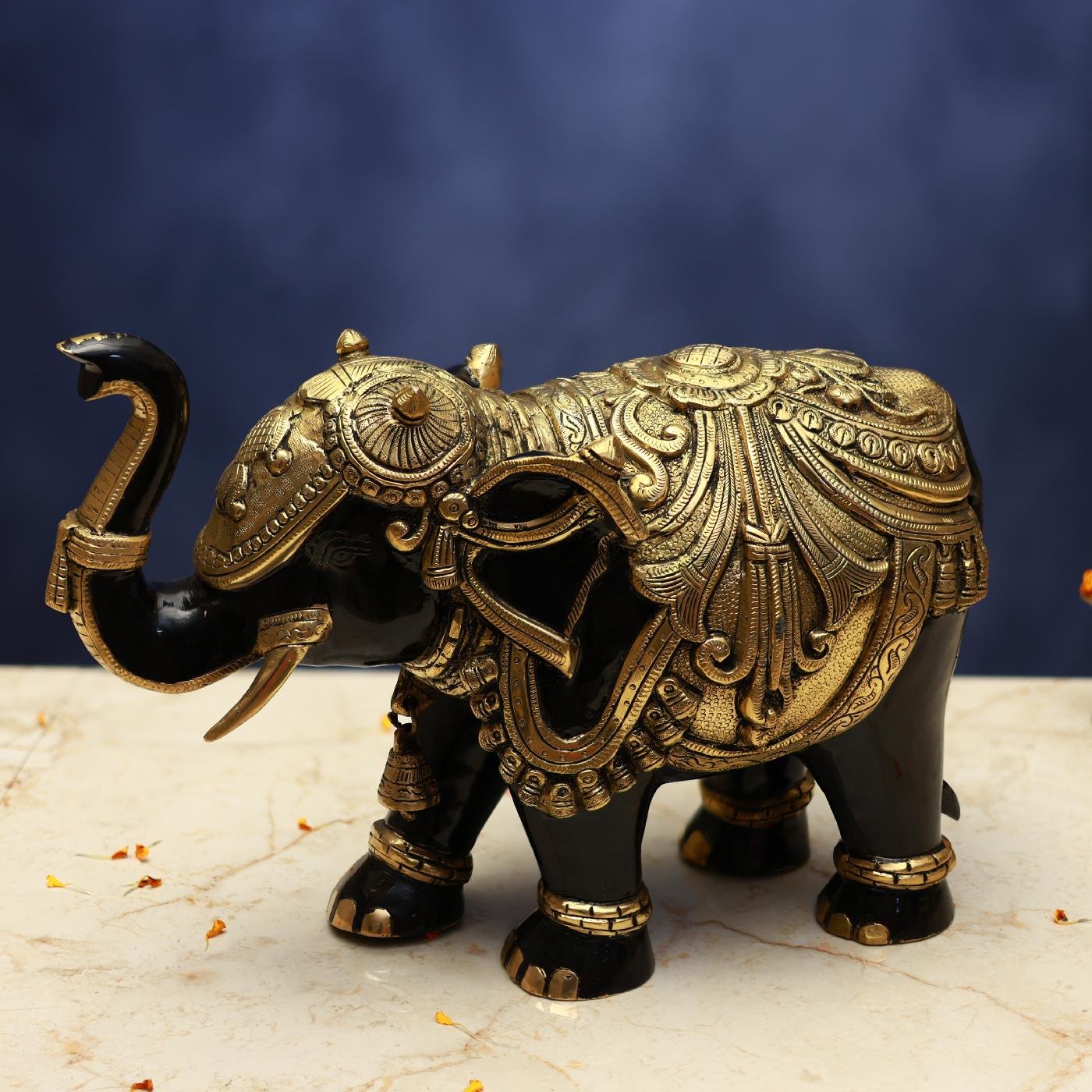 Add a touch of elegance and symbolic strength to your space with this 12-inch Brass Black Colour Elephant Statue. Beautifully handcrafted with a rich black finish, this statue represents wisdom, power, and good luck. Perfect for home décor, office spaces, or as a meaningful decorative accent, it brings positivity and timeless charm to any setting.