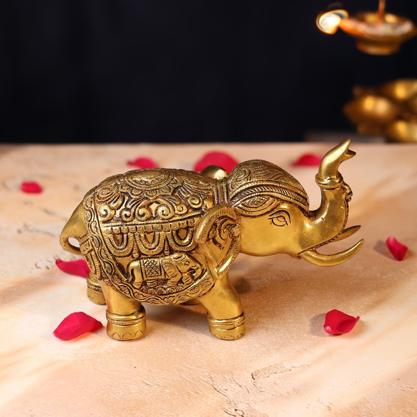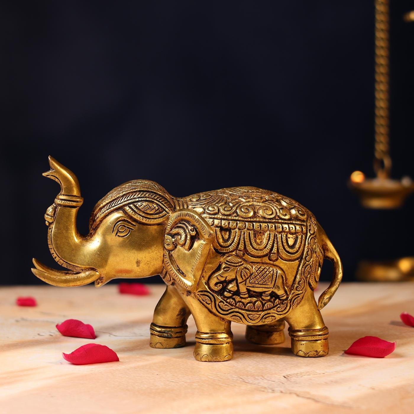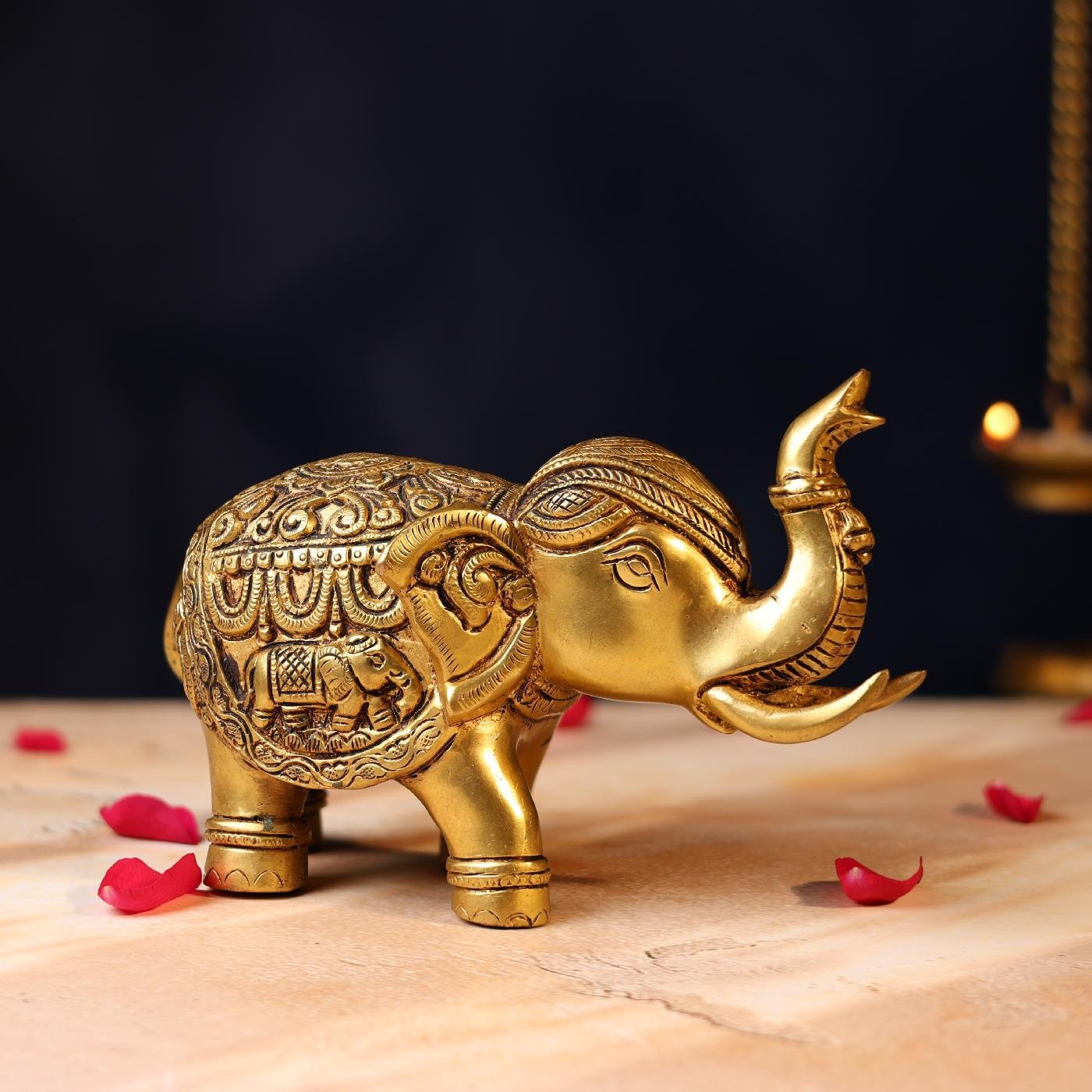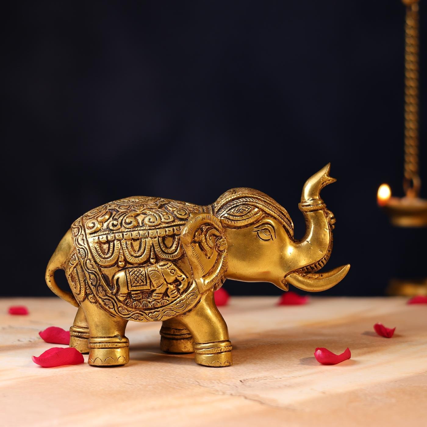 This Brass Elephant Statue (5.5 inches) is handcrafted from pure brass with fine detailing. Elephants are considered symbols of wisdom, prosperity, and strength, making this piece perfect for home décor, office décor, or gifting. Compact and elegant, it adds a touch of tradition and charm to any space.