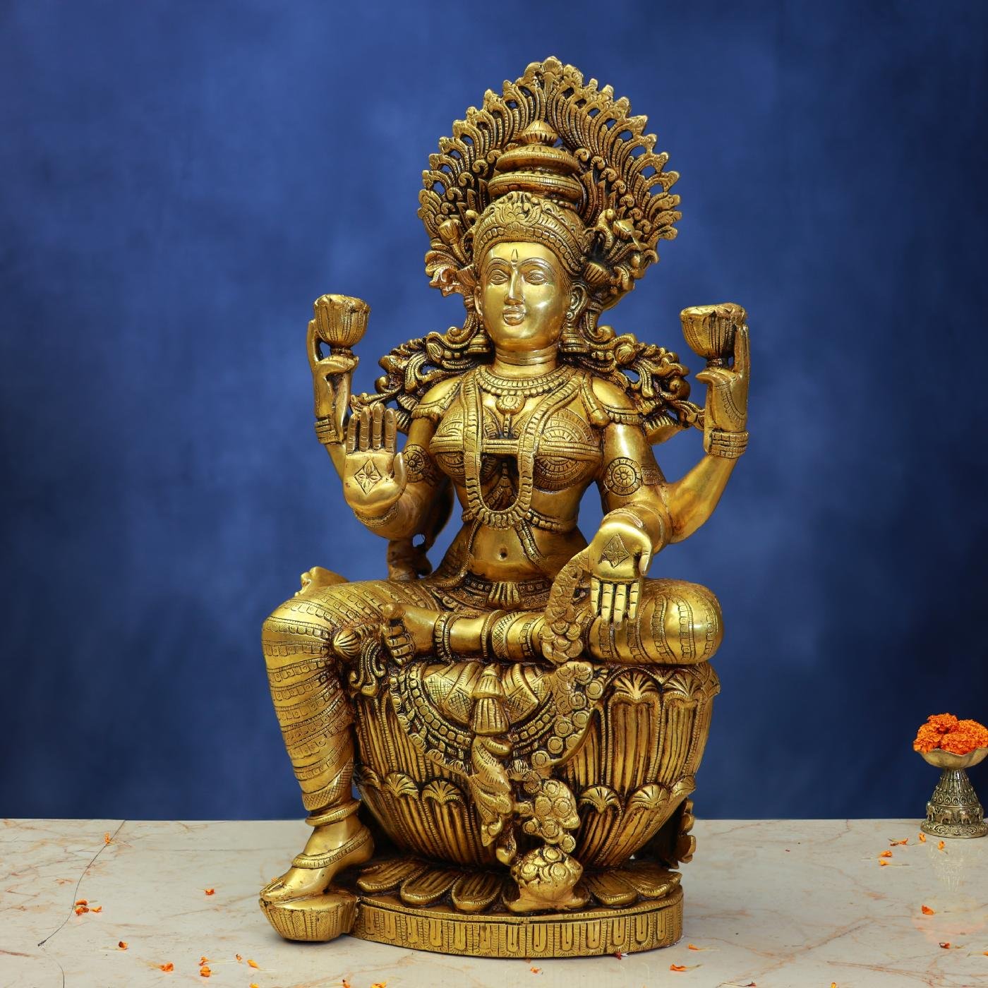 Invite wealth, prosperity, and abundance into your space with this 24-inch Large Brass Laxmi Idol. Beautifully handcrafted with fine detailing, this majestic statue captures the divine grace and compassion of Maa Lakshmi. Perfect for temples, large pooja rooms, offices, and spiritual décor, it radiates positivity, harmony, and blessings.