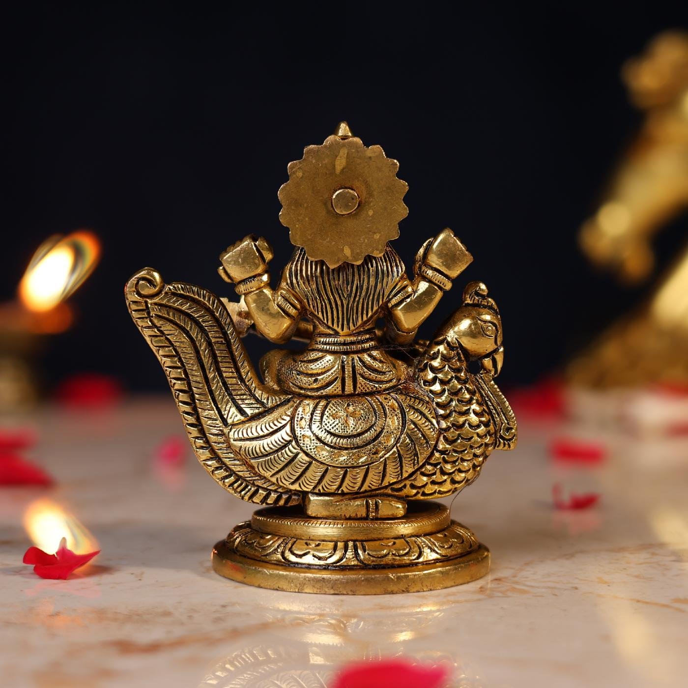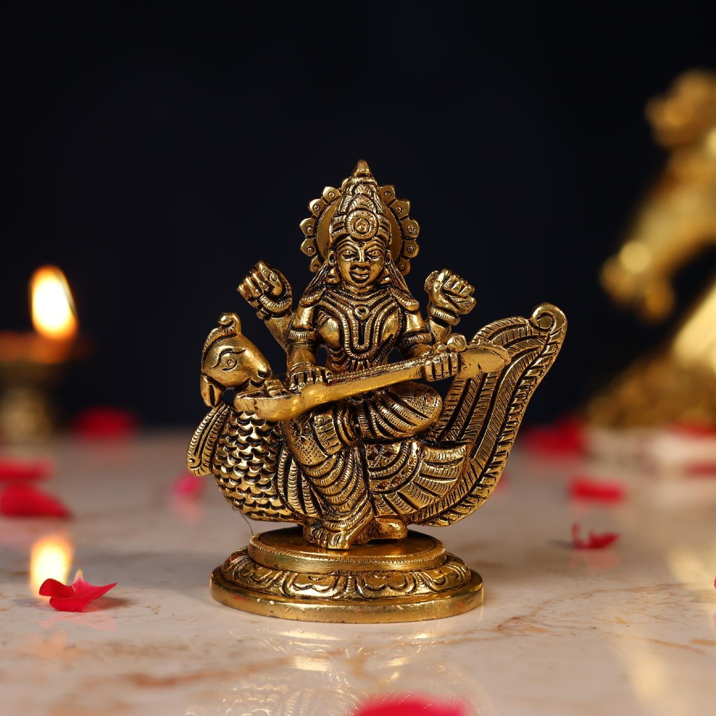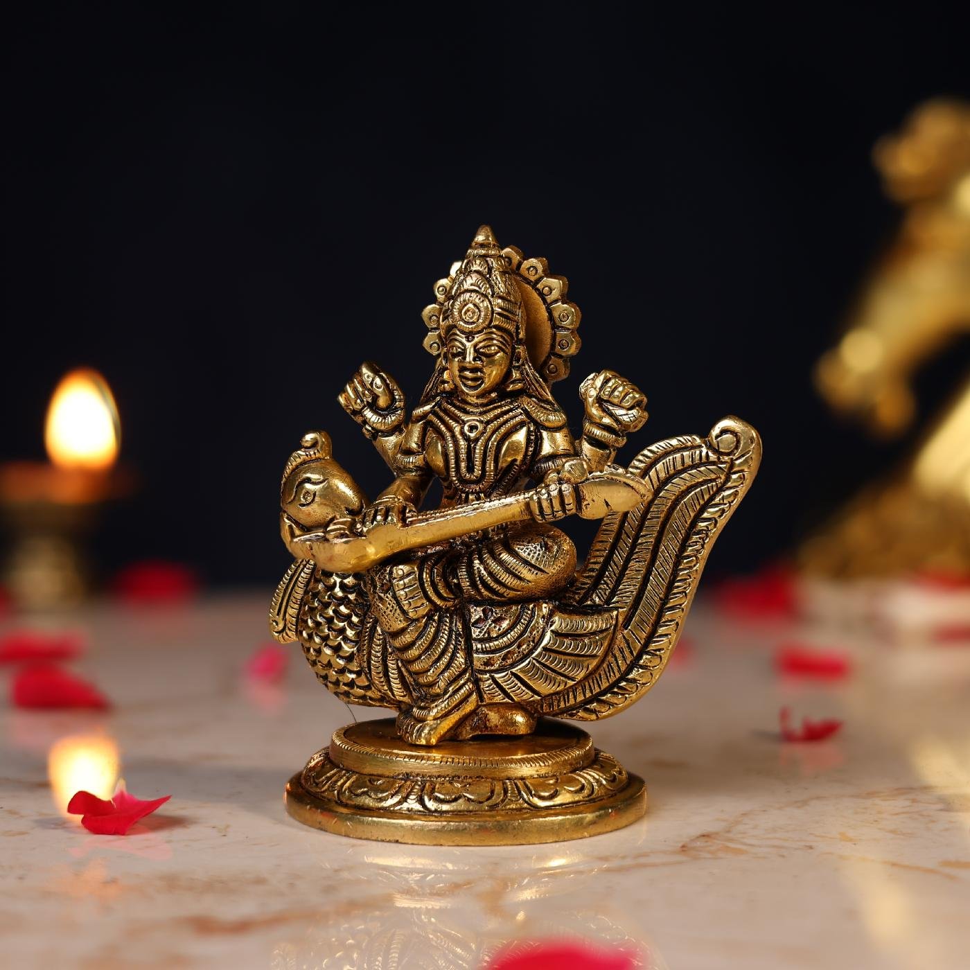 Brass Goddess Saraswati Idol – 4.5 Inch
