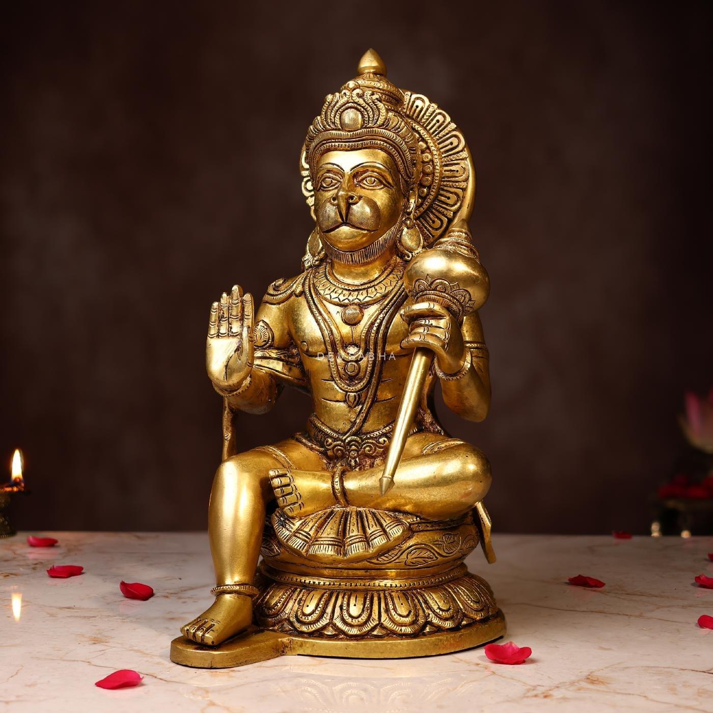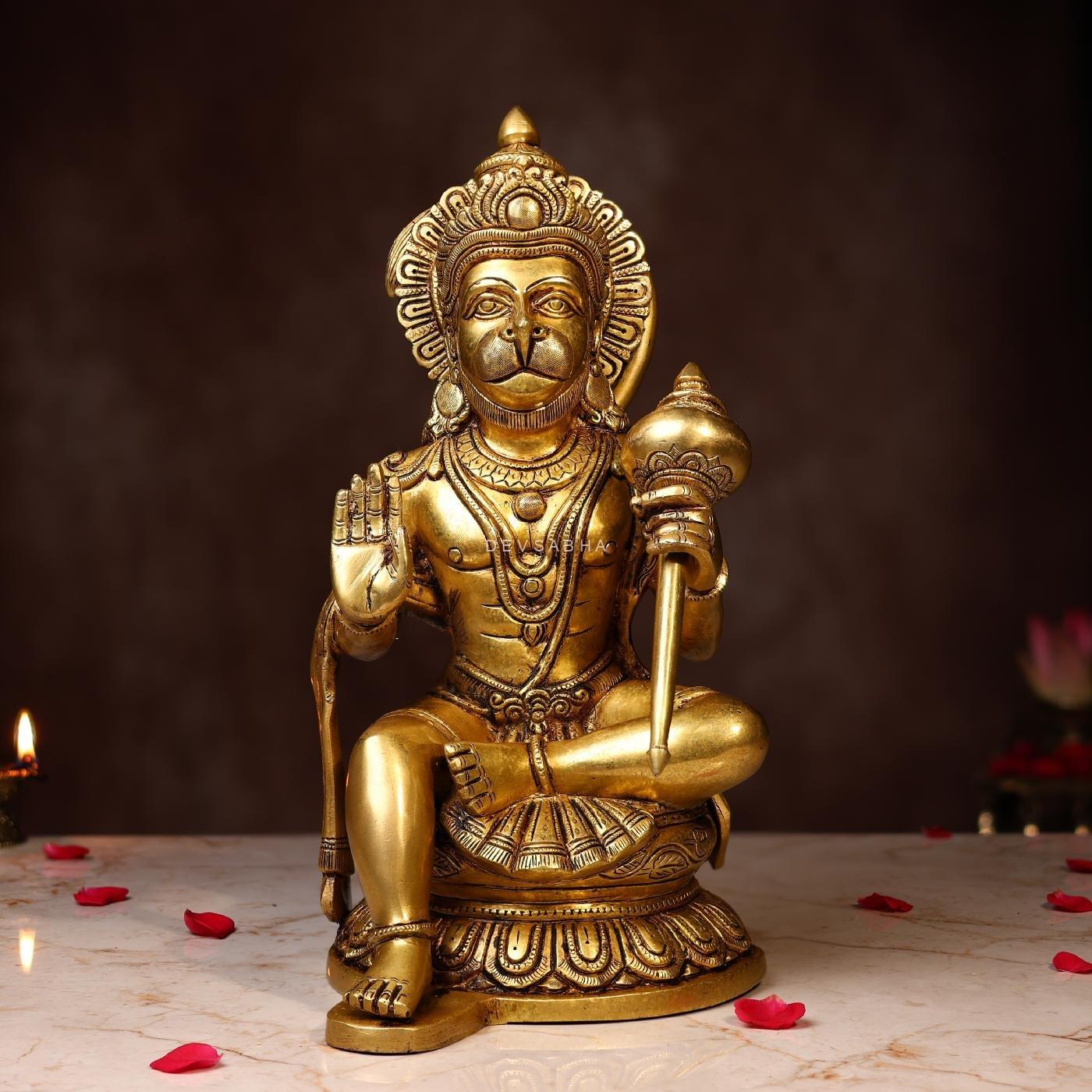 This Brass Hanuman Idol (14 inches) is handcrafted from pure brass with fine detailing. Lord Hanuman, the symbol of strength, devotion, and protection, makes this idol perfect for daily pooja, temples, or gifting. Large and elegant, it creates a powerful spiritual presence.