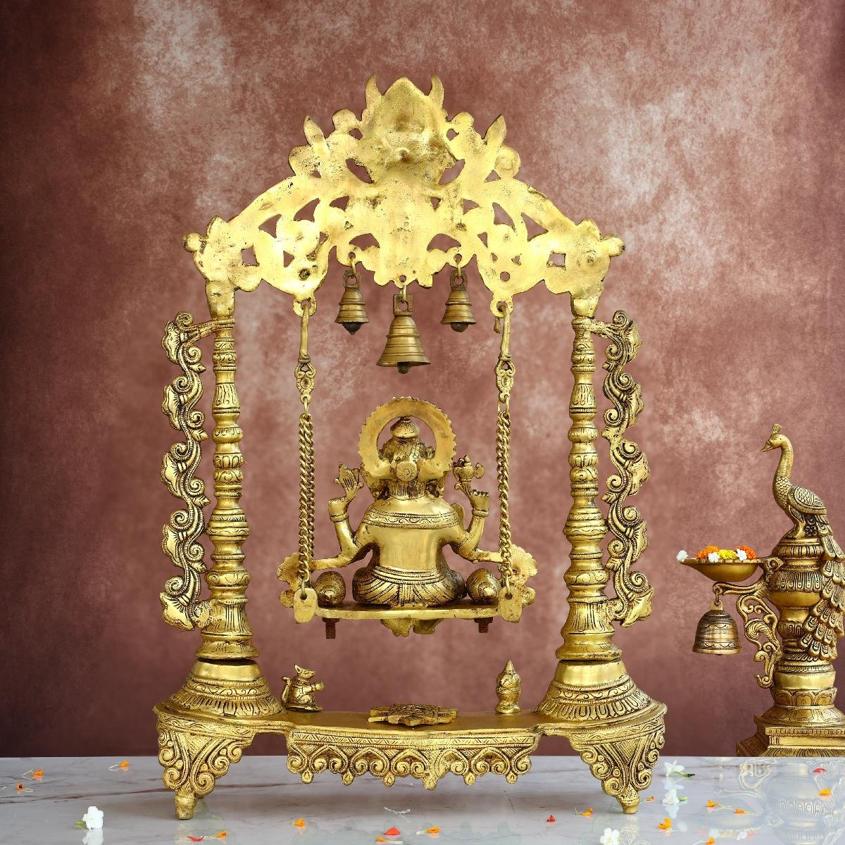 Intricate Jhula Design – Finely detailed swing and posture highlighting Lord Ganesha’s divine charm