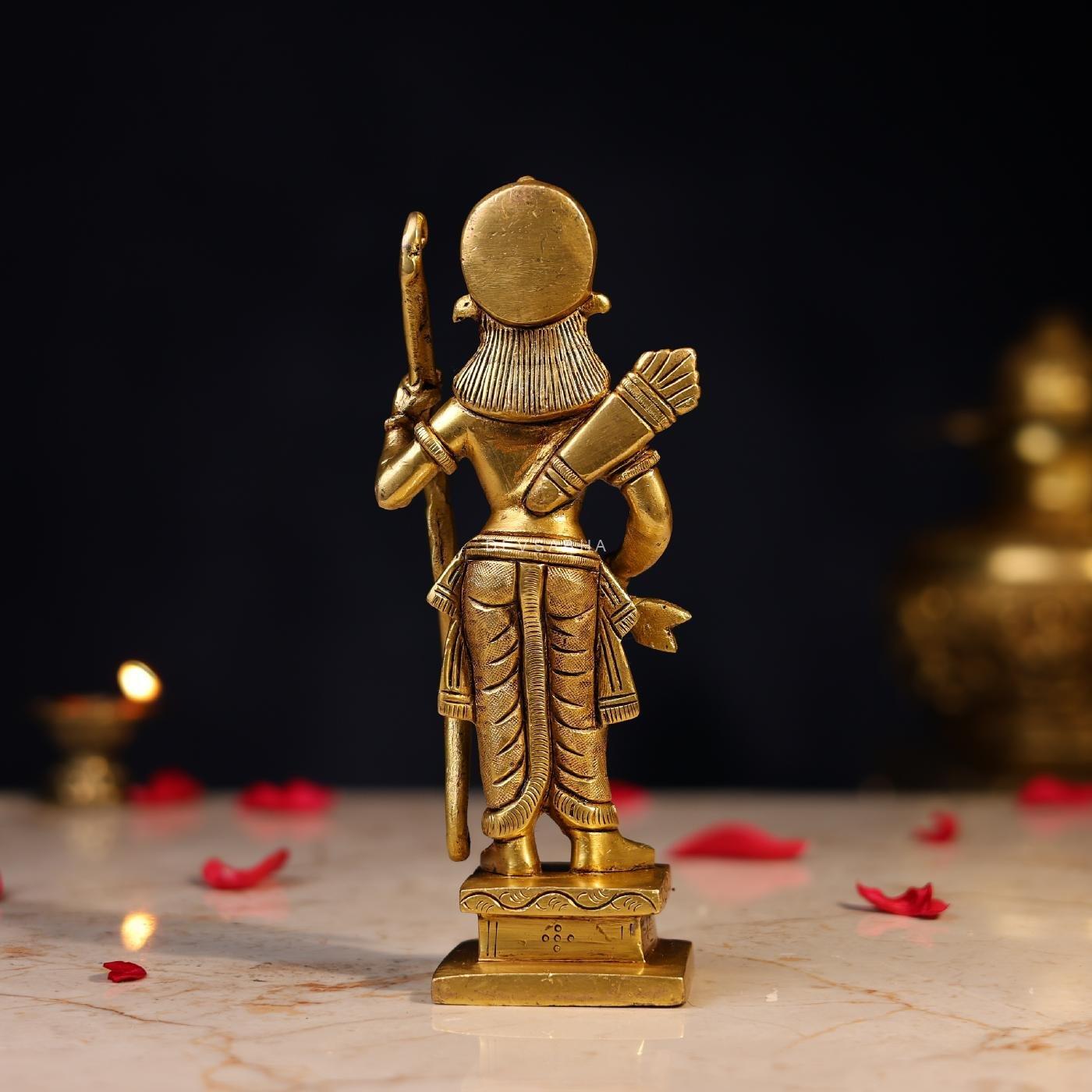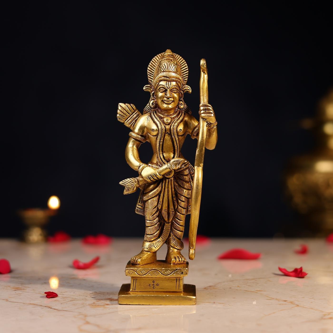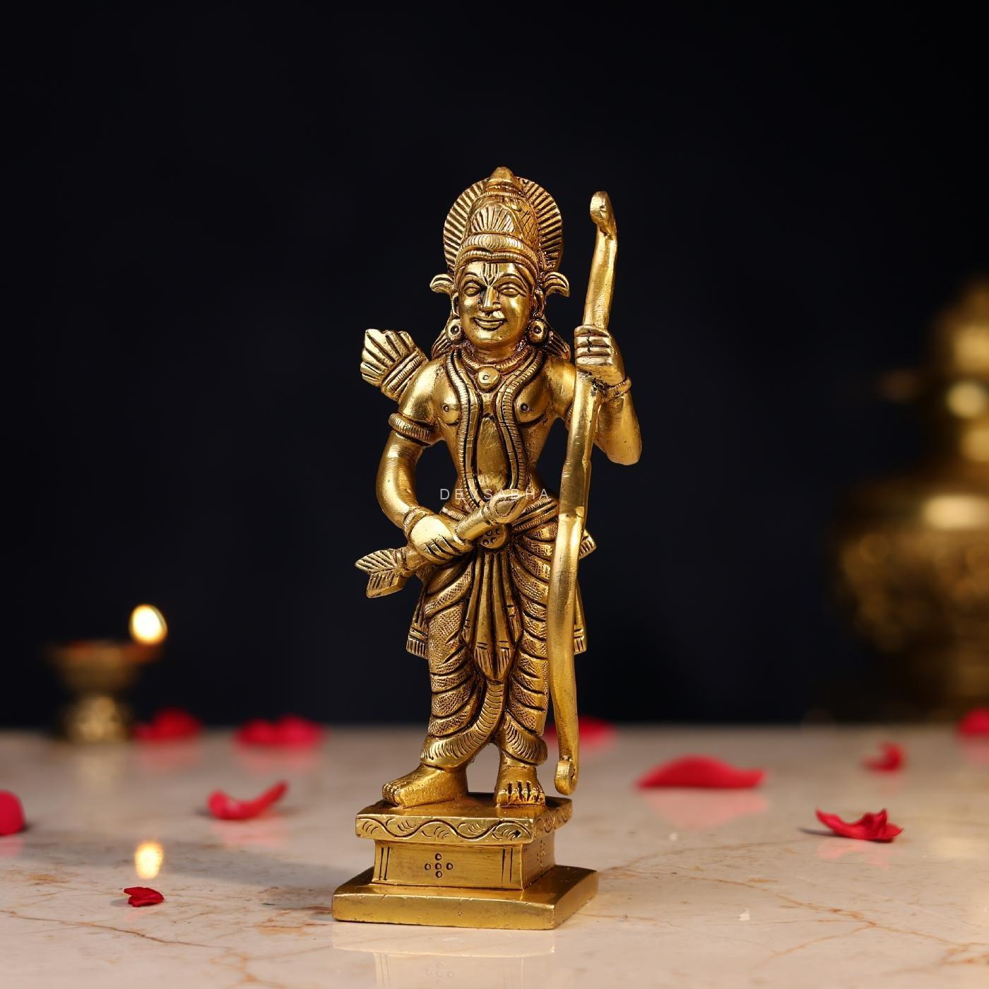 This Brass Lord Rama Idol (8 inches) is handcrafted from pure brass with fine detailing. Lord Rama, revered as the embodiment of truth, dharma, and virtue, makes this idol perfect for daily pooja, home temples, or gifting. Strong and elegant, it radiates devotion and spiritual energy.