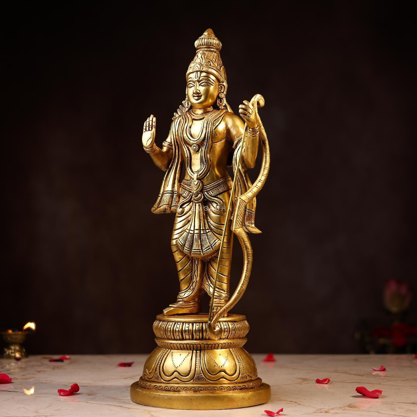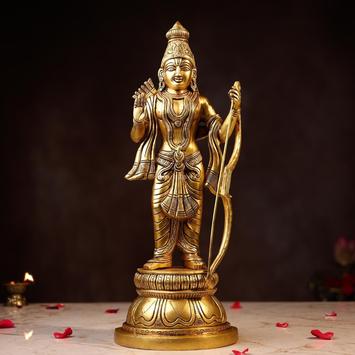 This authentic brass Lord Rama murti is a timeless addition to your pooja space, radiating positivity, devotion, and spiritual harmony.