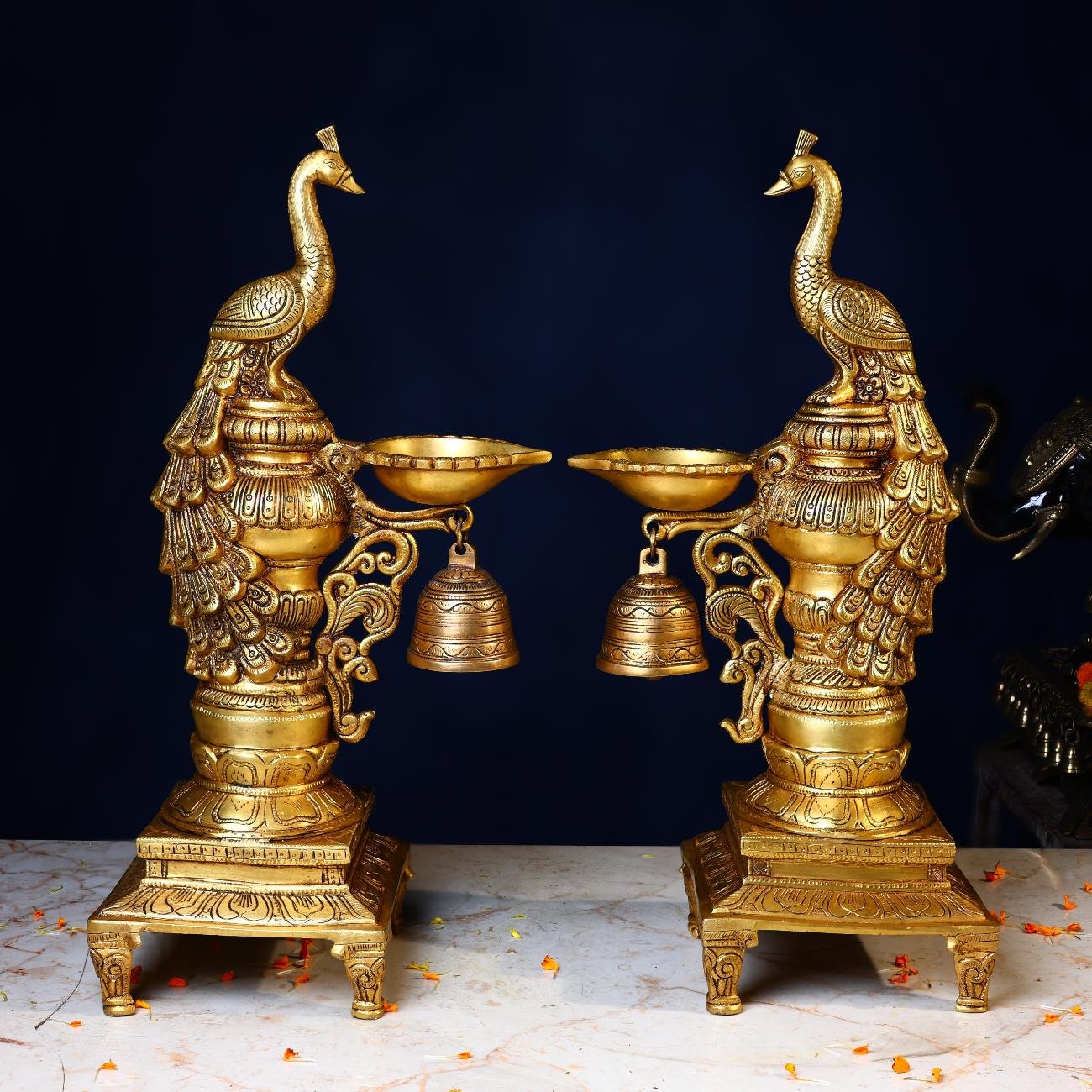 Light up your home or temple with this graceful Brass Peacock Lamp Pair and invite divine light, beauty, and positivity into your space.