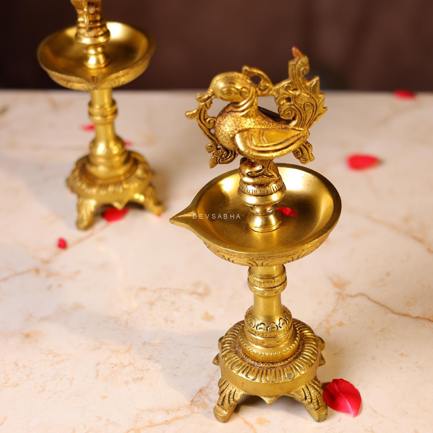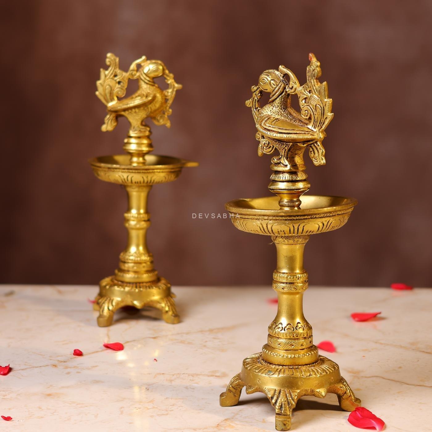 Light these elegant peacock lamps during your rituals or place them as décor accents to bring divine blessings and charm into your home. Explore more traditional creations in our Brass Lamp Collection.