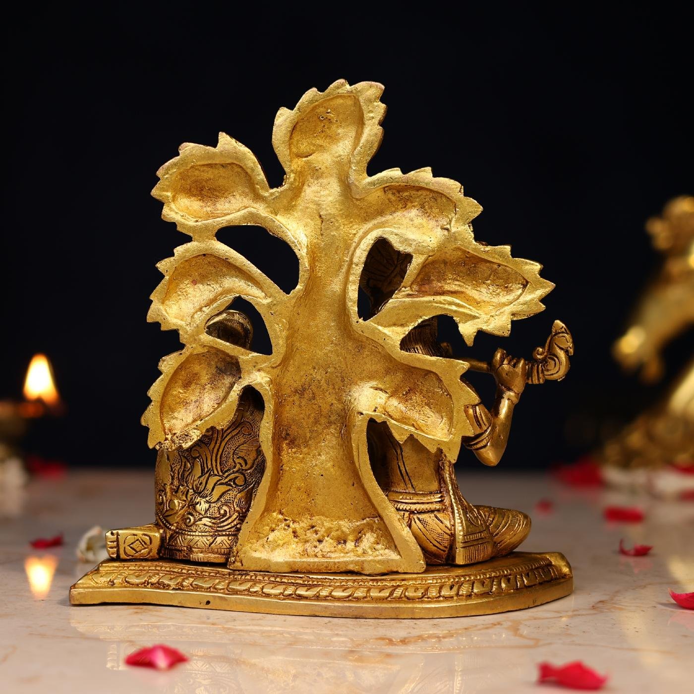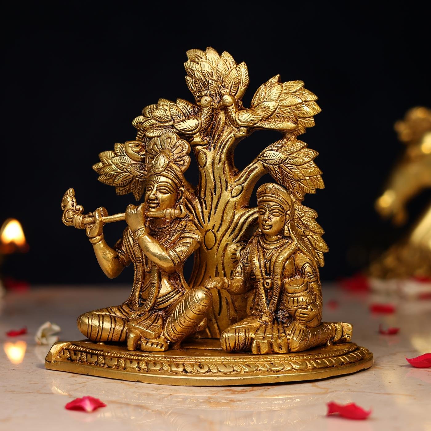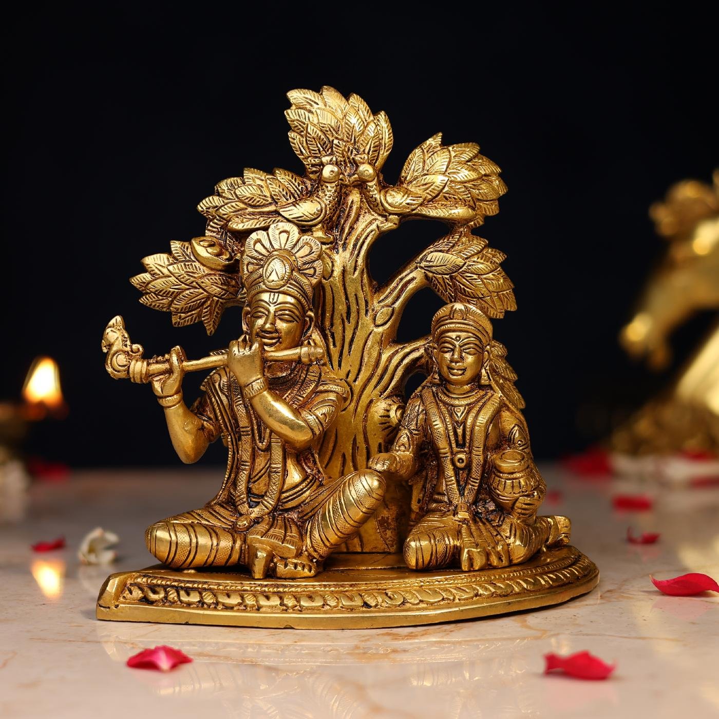 Brass Radha Krishna Idol Sitting Under Kalpavriksha Tree Height 7 Inch