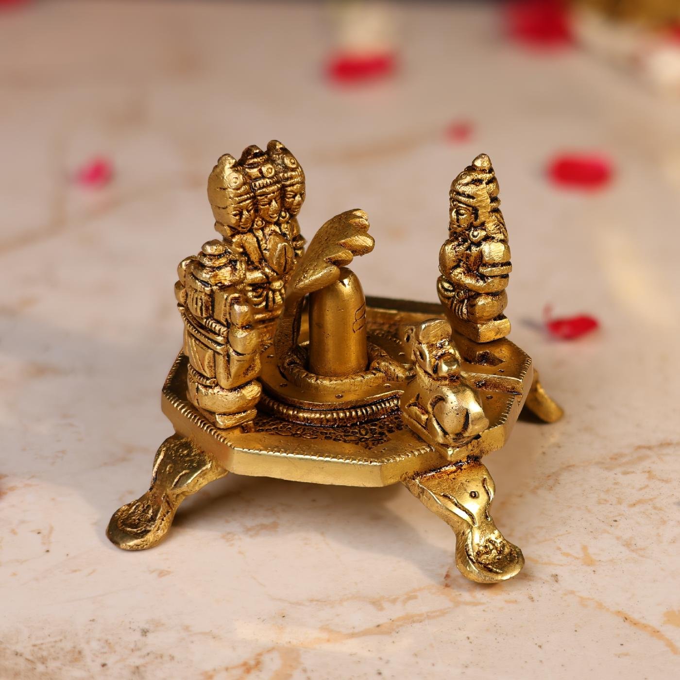 This Brass Shiva Linga with Ganesh, Kartikeya & Parvati (2.6 inches) is handcrafted from pure brass with fine detailing. Representing Lord Shiva with his divine family, it symbolizes strength, protection, and blessings. Compact and sacred, it is perfect for daily pooja, travel-friendly worship, or gifting.
