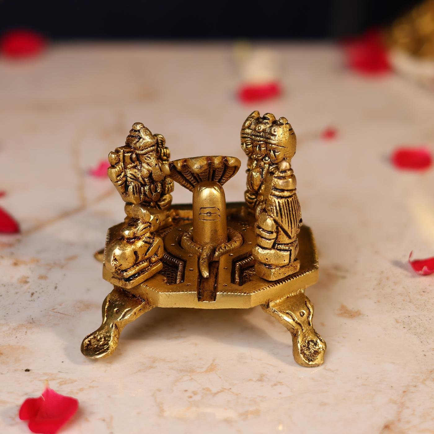 Brass Shiva Linga with Ganesh, Kartikeya & Parvati Height 2.6 Inch