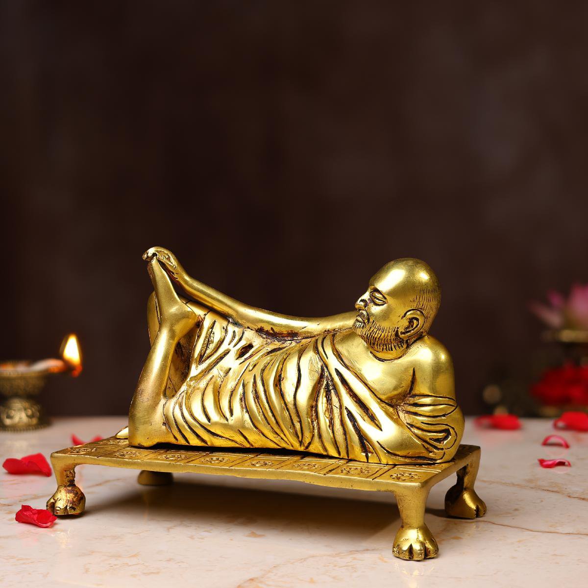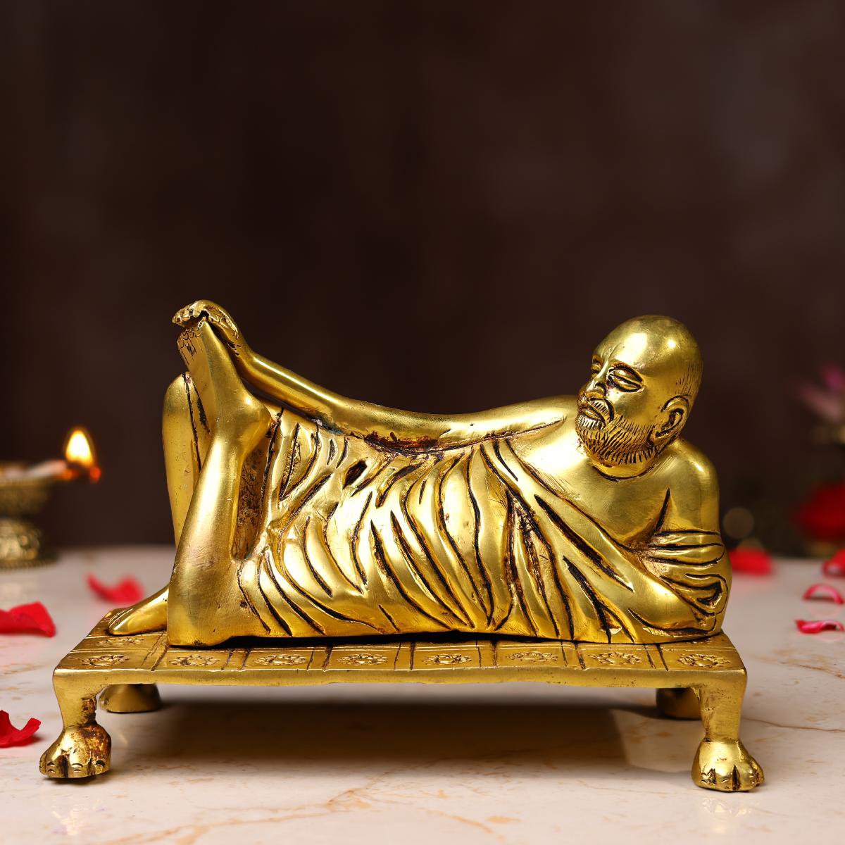 Place this sacred Brass Sleeping Raghavendra Swamy Idol in your pooja space to experience serenity, faith, and divine grace every day.