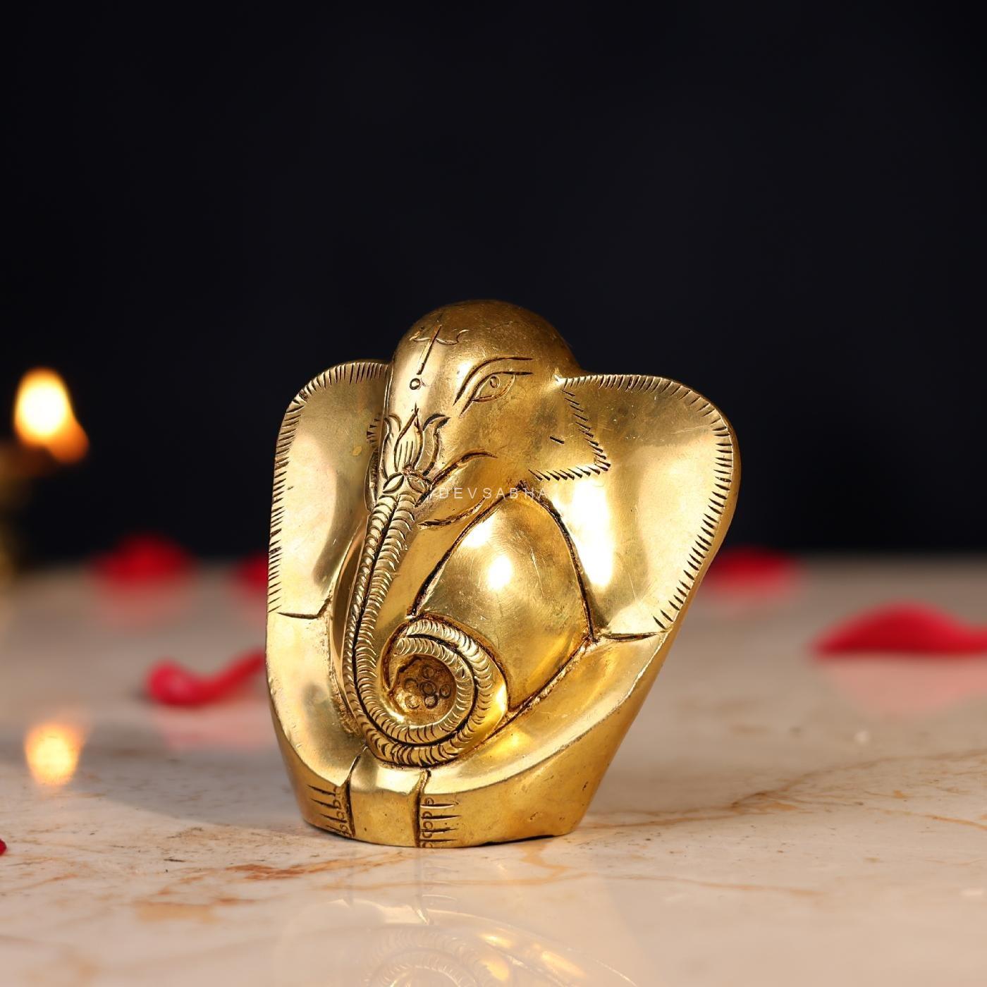 This Brass Ganesh Idol (3.5 inches) is handcrafted from pure brass with fine detailing. Compact and elegant, it is perfect for daily pooja, office desks, travel-friendly setups, or gifting. Lord Ganesha, the remover of obstacles, blesses with wisdom, prosperity, and protection.