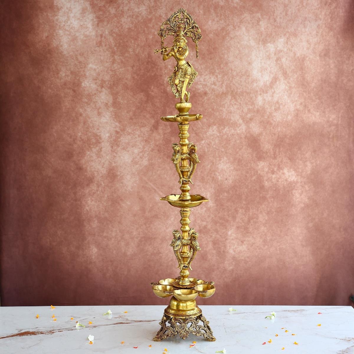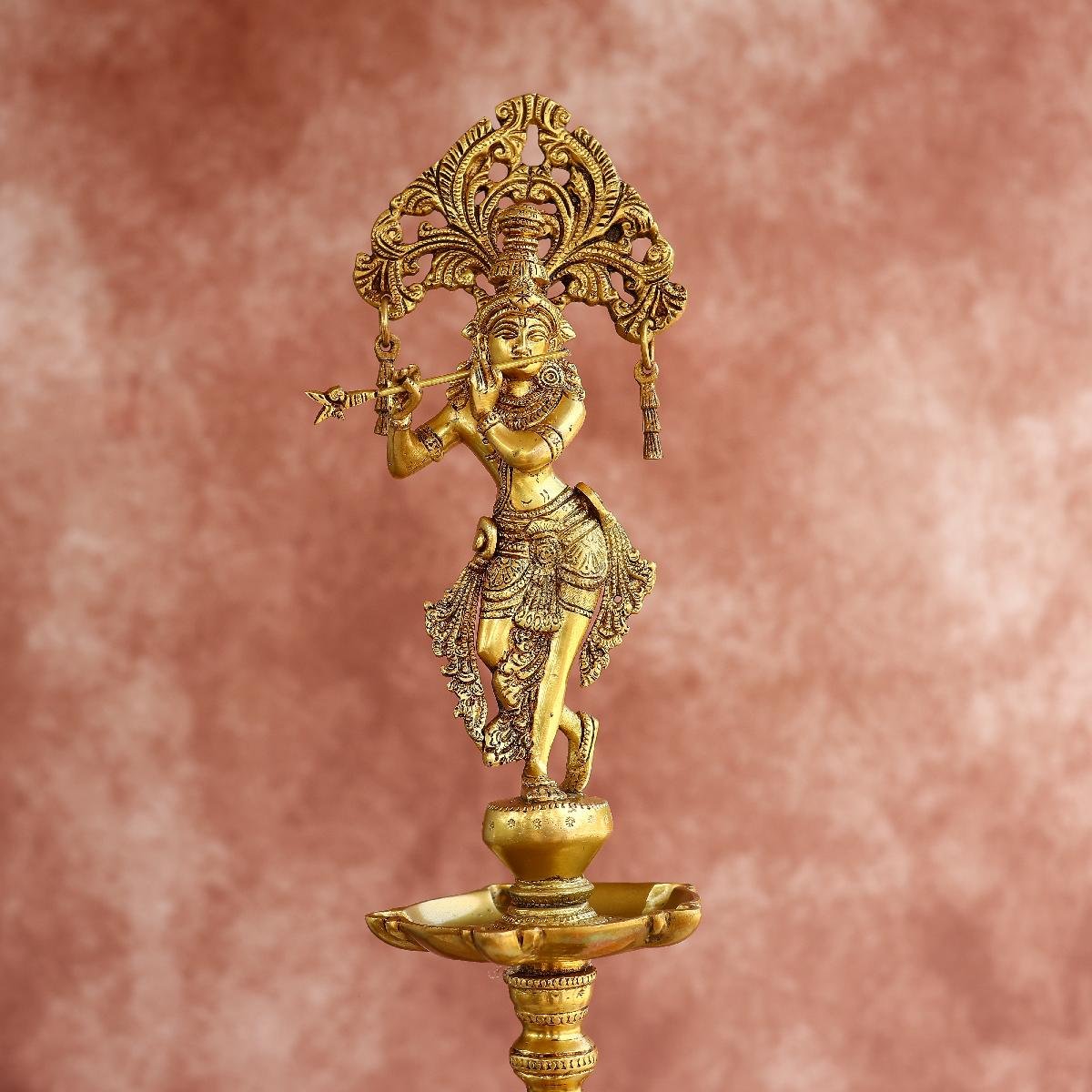 Brass Tall Krishna Lamp – 36.5 Inches – Majestic Handcrafted Diya for Home & Temple Décor