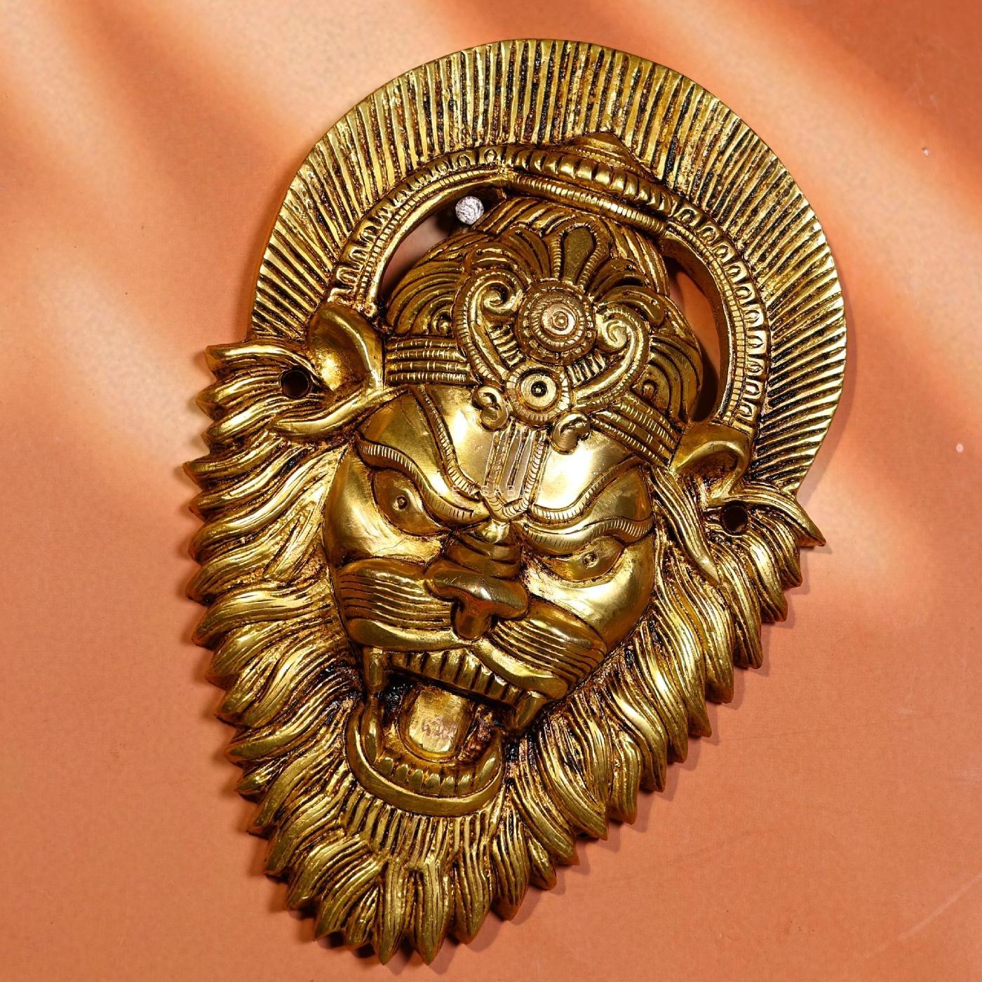 This authentic brass Narasimha wall hanging idol is perfect for devotees seeking divine blessings while adding spiritual elegance to their surroundings.