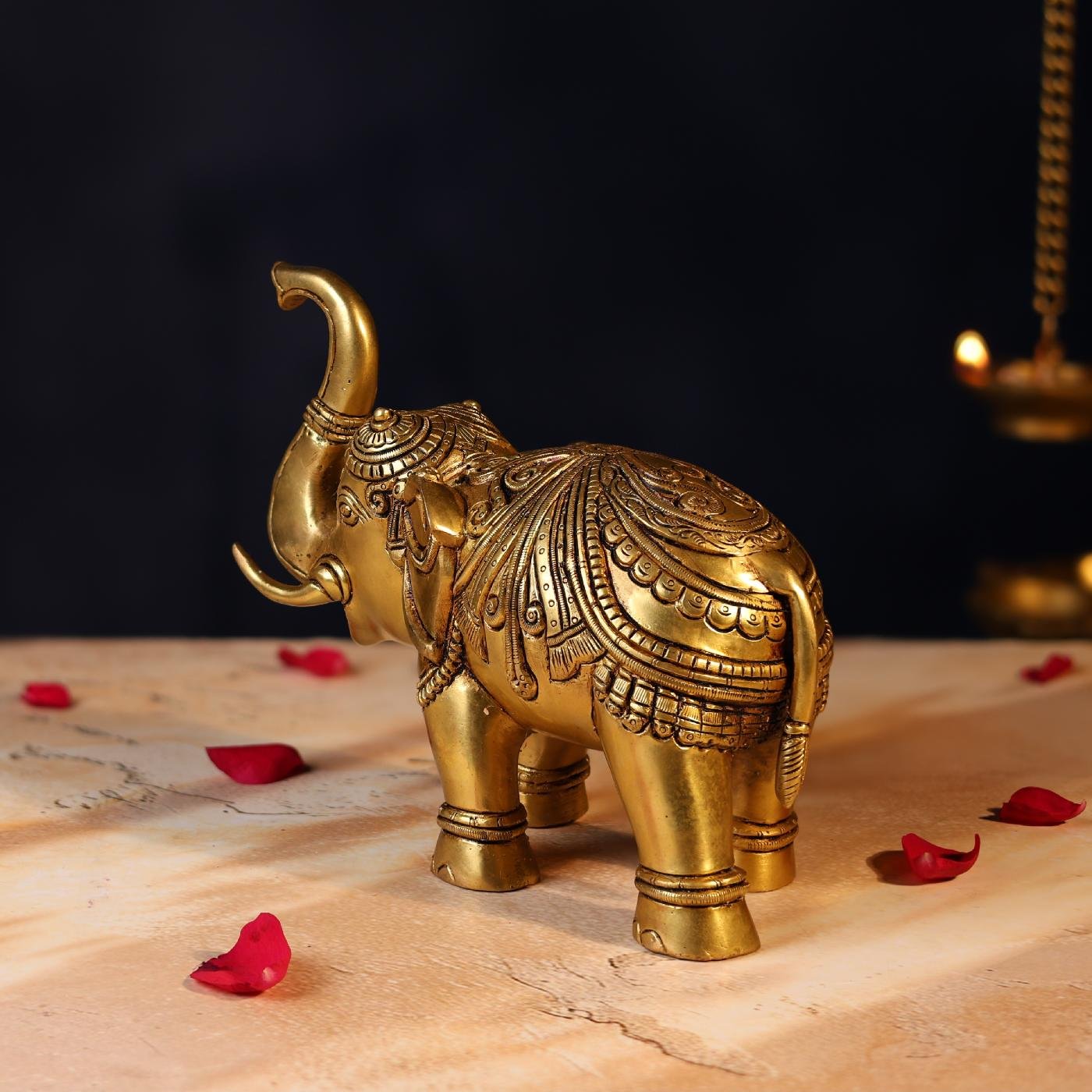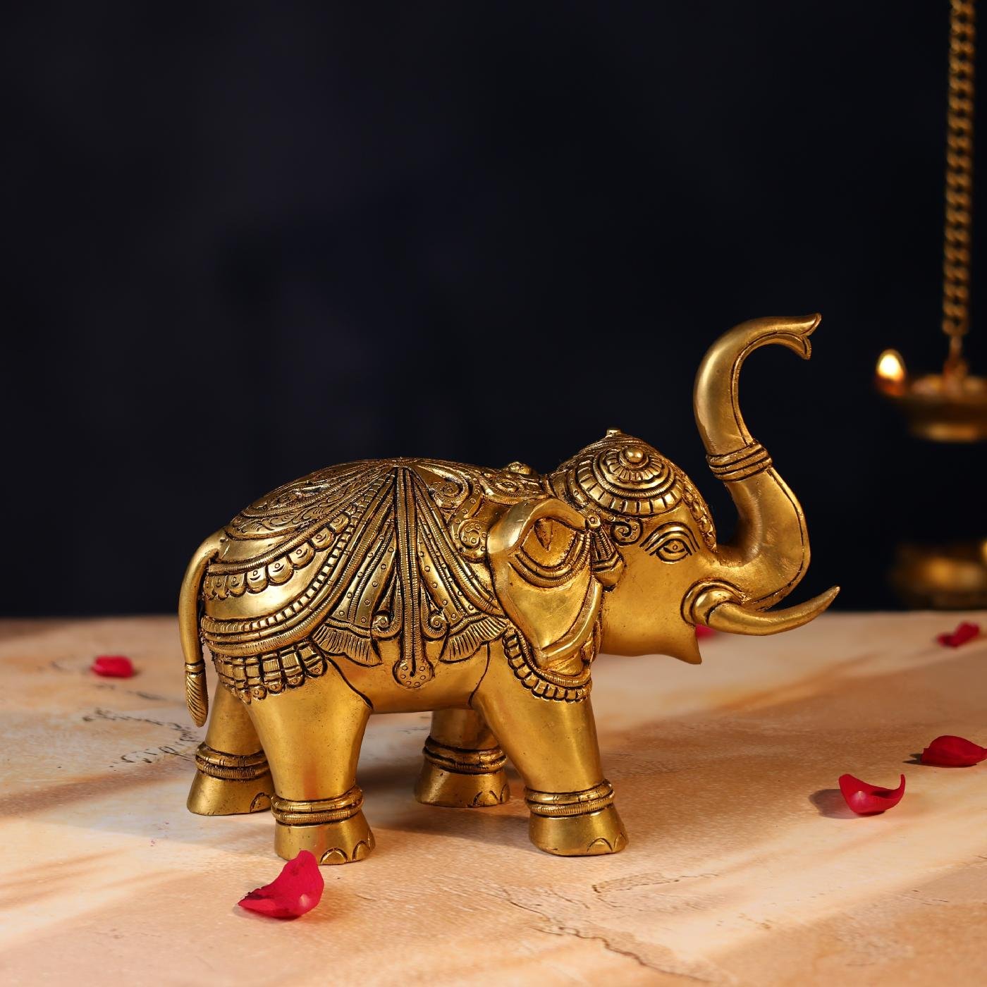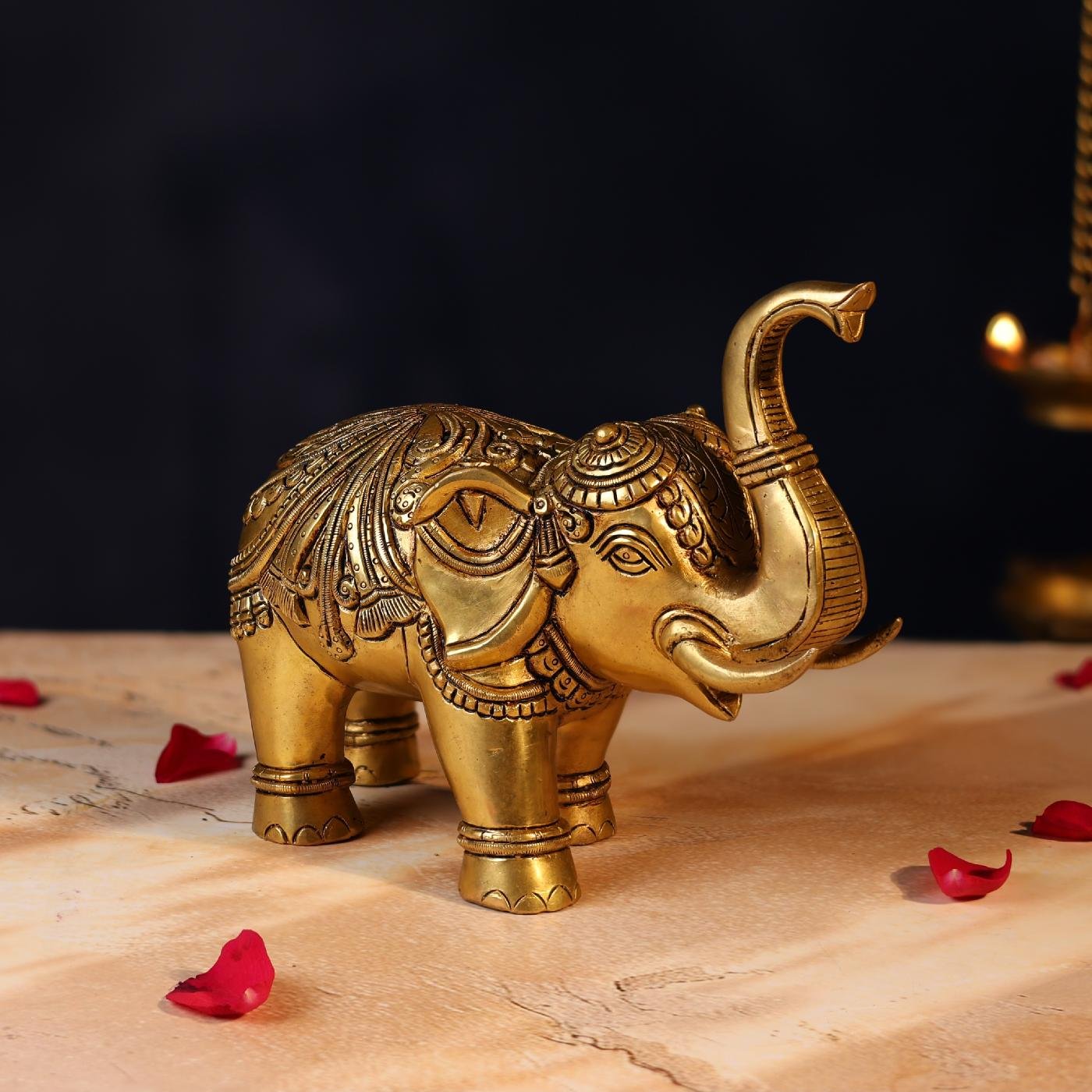 This Elegant Brass Elephant (6.5 inches) is handcrafted from pure brass with fine detailing. Elephants, considered symbols of wisdom, prosperity, and strength, make this piece perfect for home décor, office décor, or gifting. Stylish and durable, it adds a traditional yet graceful charm to any space.