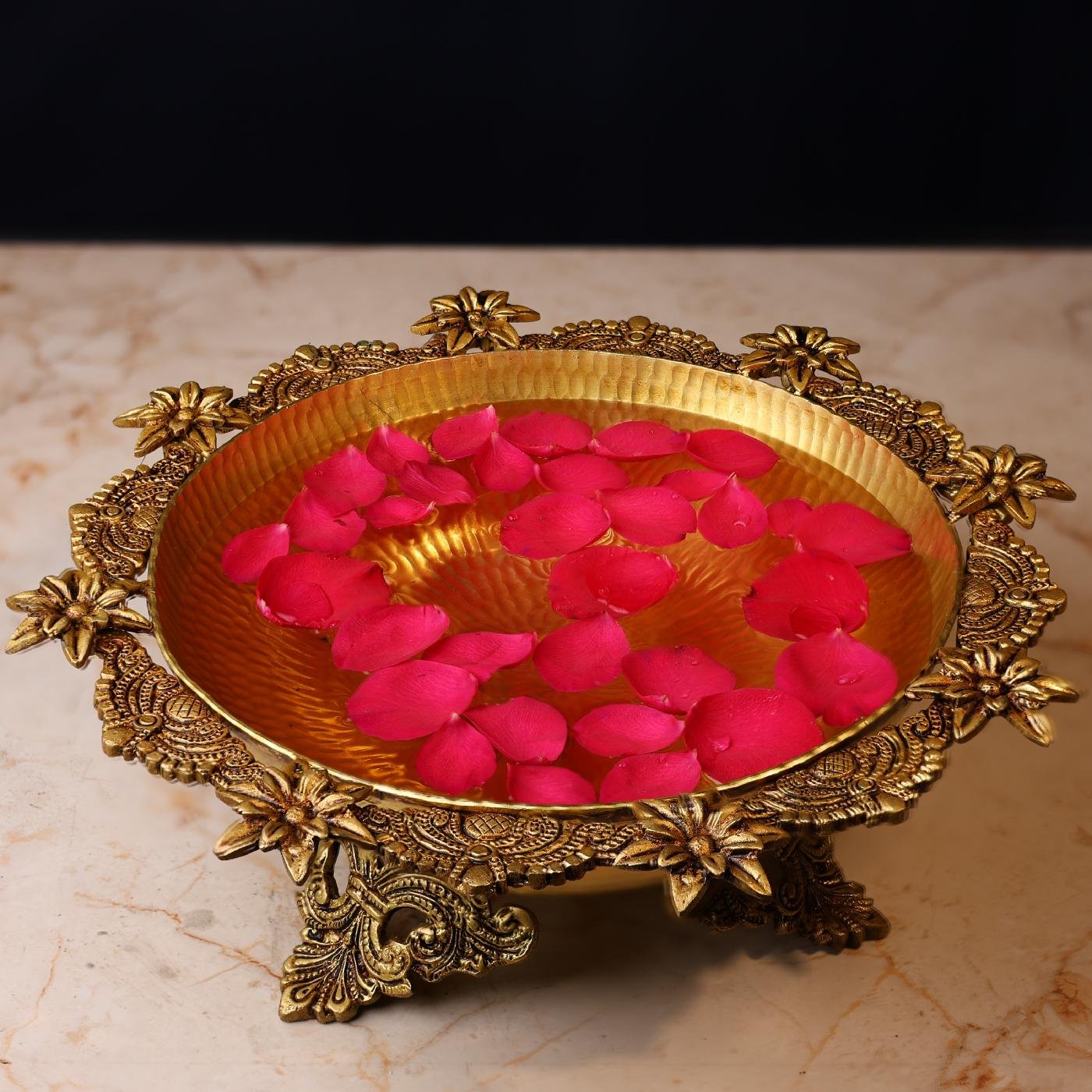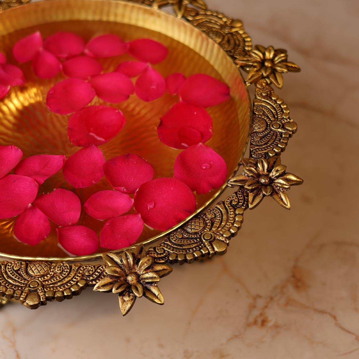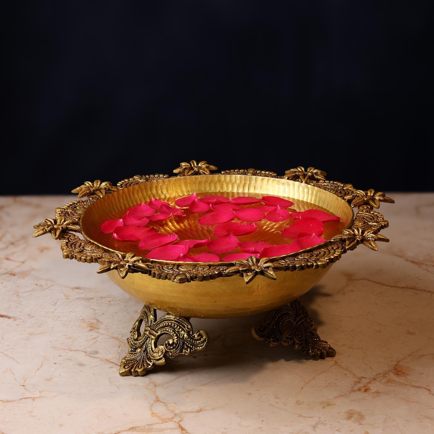 This Elegant Brass Urli (5.5 inches) is handcrafted from pure brass with a polished finish. Traditionally used with water, flowers, or floating candles, the urli is a symbol of prosperity and positivity. Perfect for home décor, festive décor, or gifting, it adds charm and elegance to any space.