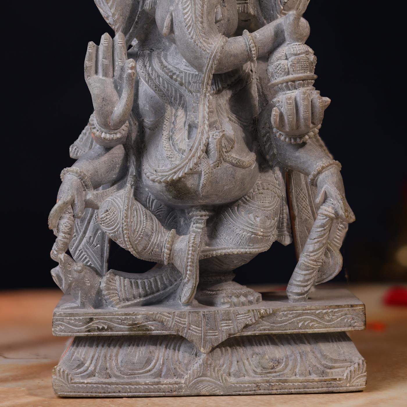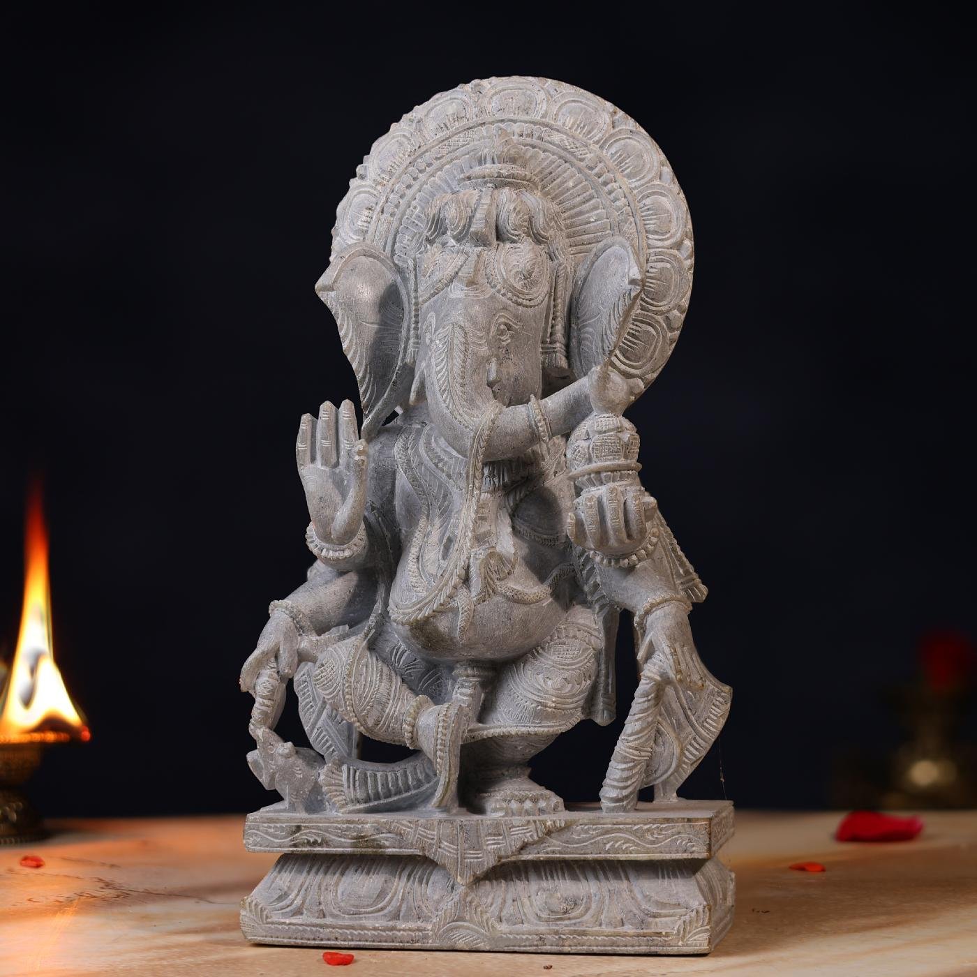 This Green Stone Standing Ganesh Idol (10 inches) is intricately handcrafted with fine detailing. Lord Ganesha, the remover of obstacles and giver of wisdom, makes this idol ideal for daily pooja, temples, or gifting. With its elegant green stone finish, it adds charm, prosperity, and divine blessings to any sacred space.