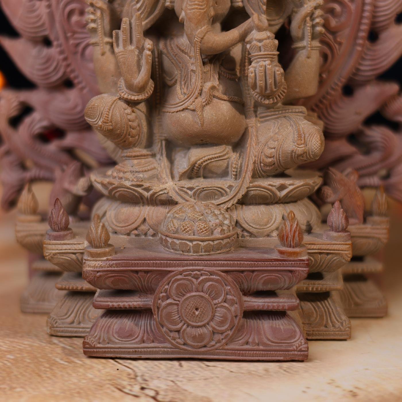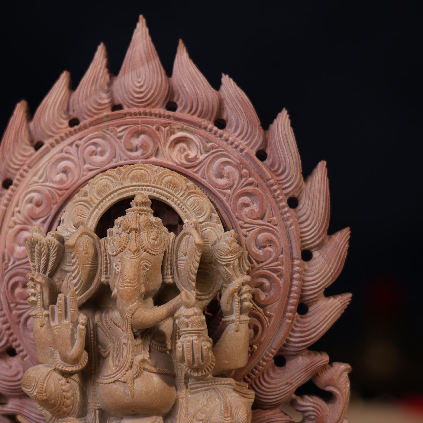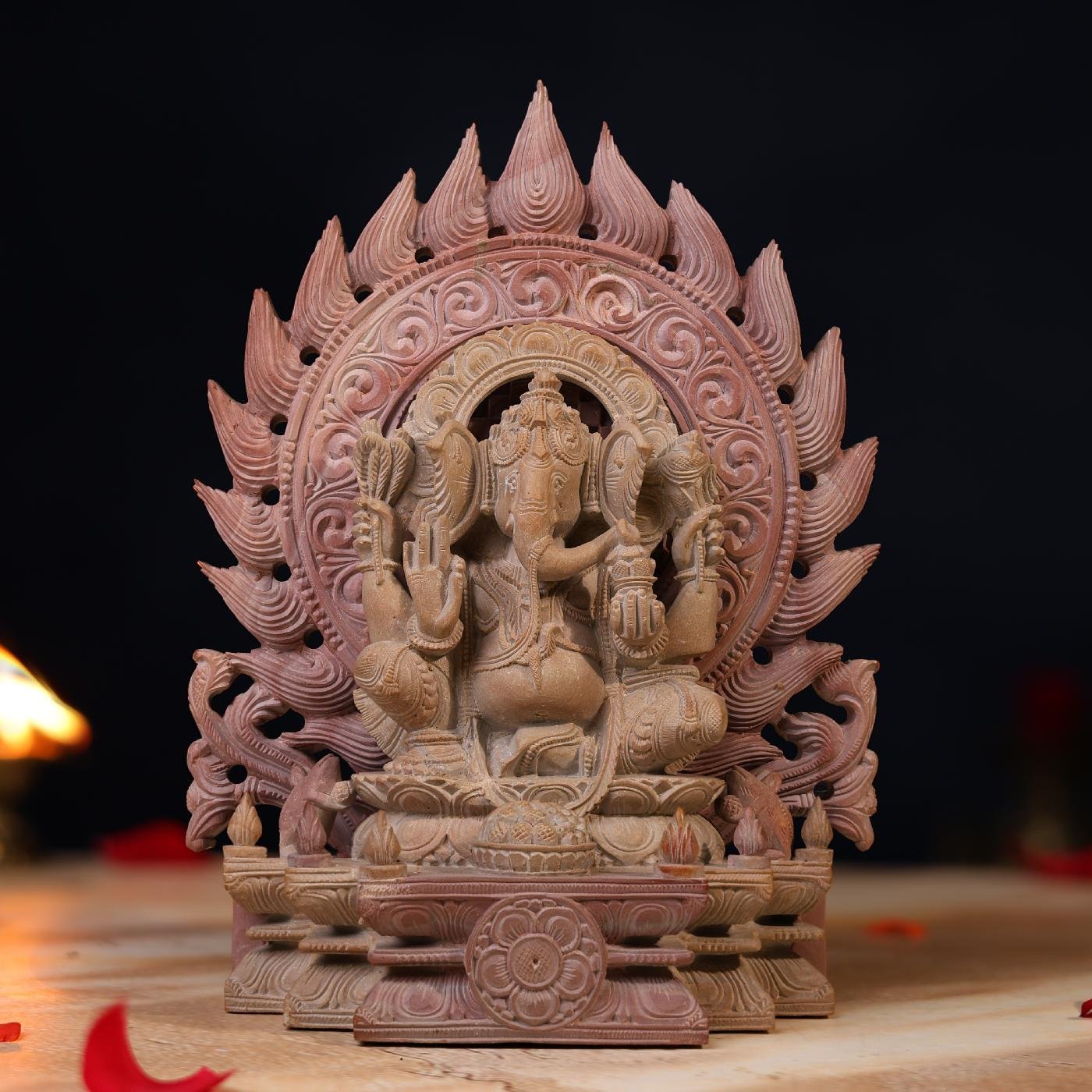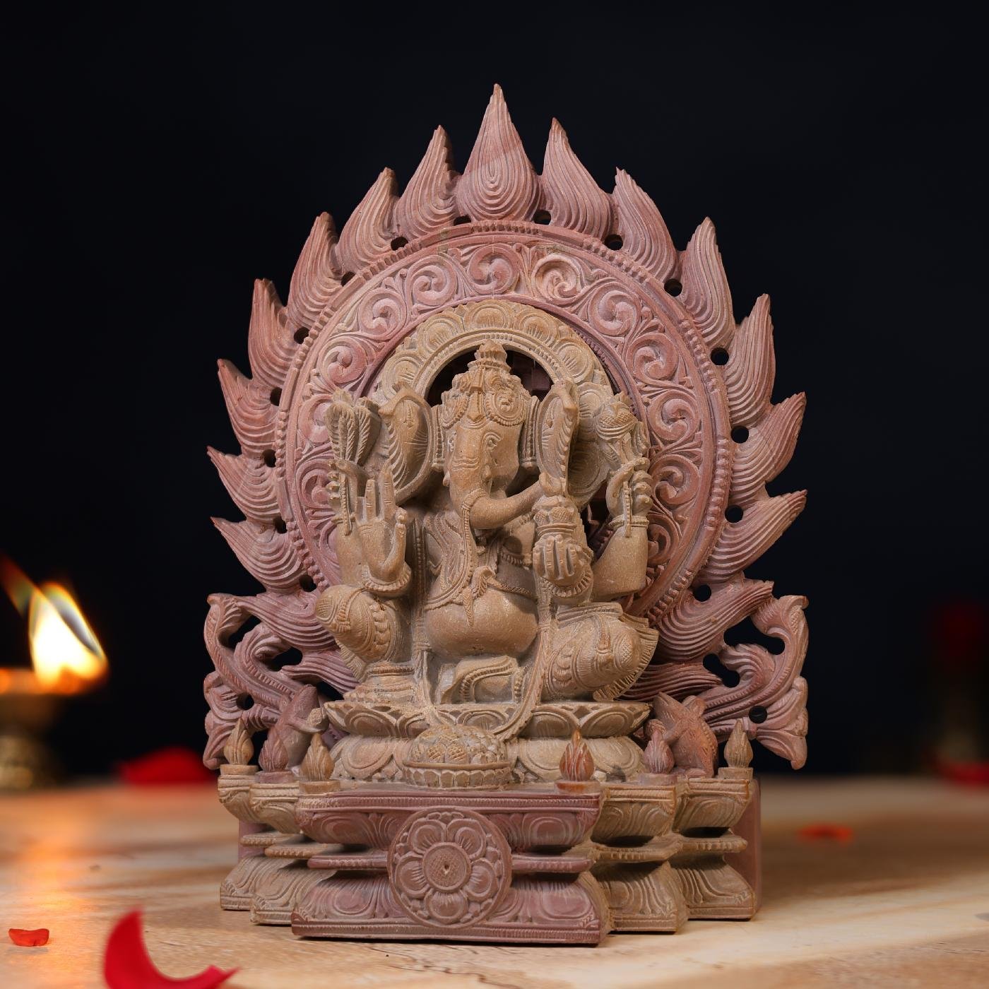 Pink Stone Ganesha Idol Sitting on Throne 8 Inch Handcrafted Murti for Pooja