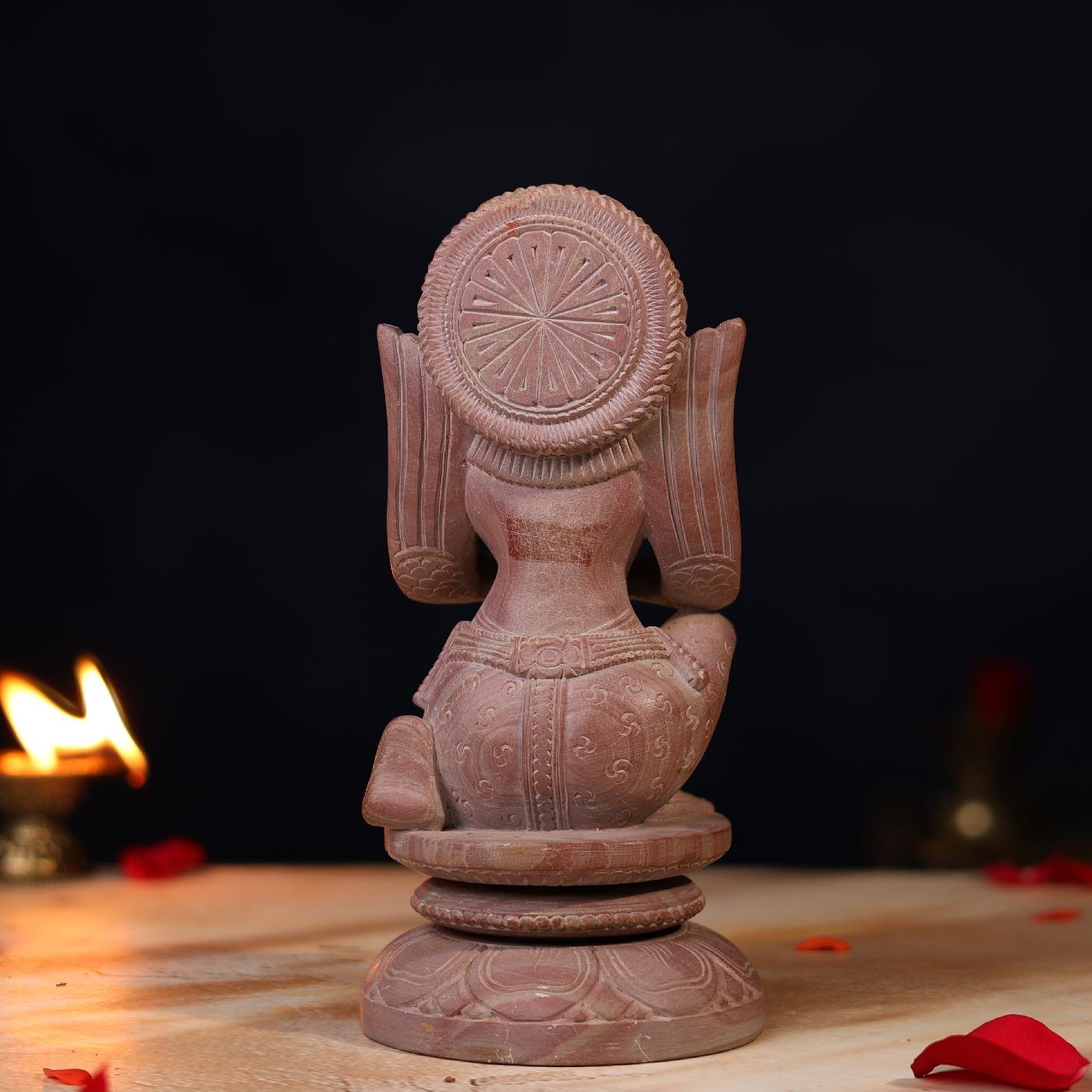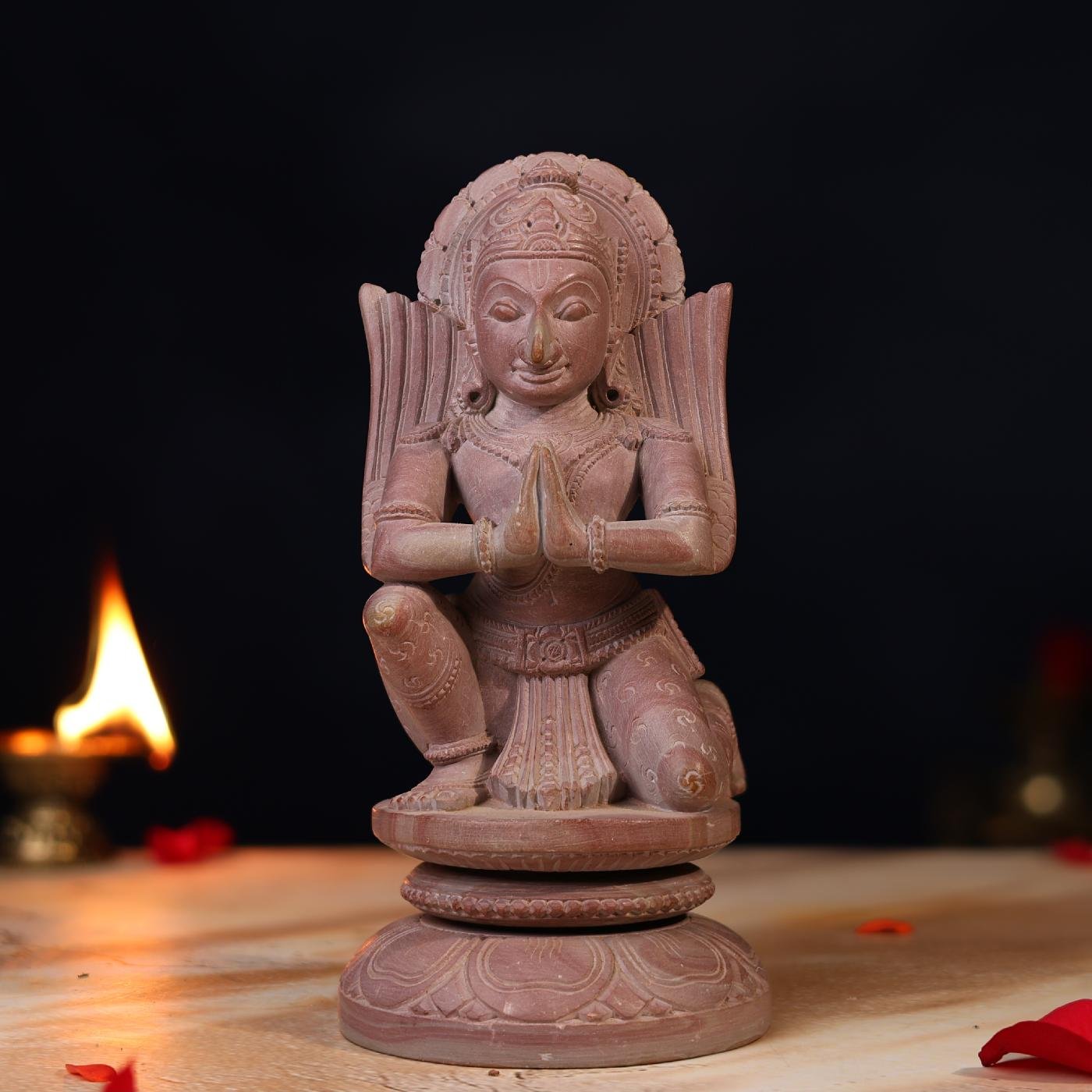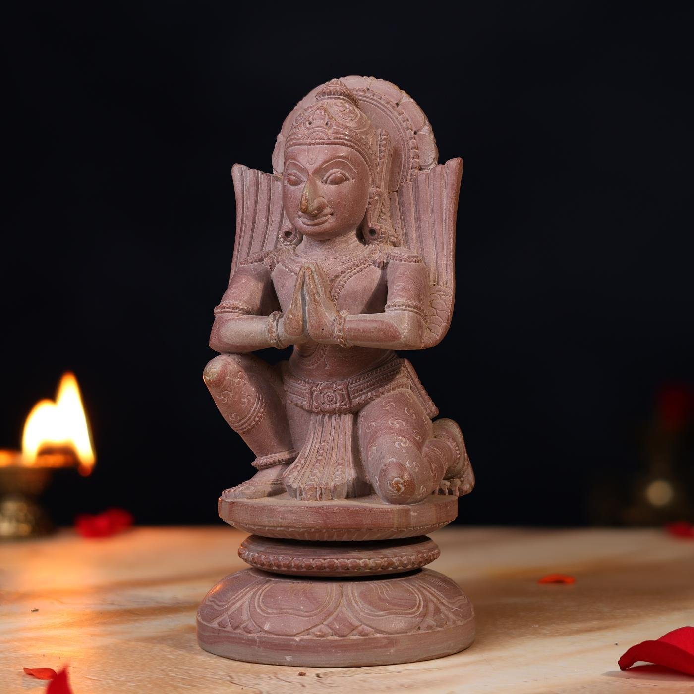 This Pink Stone Garuda Statue (8 inches) is intricately handcrafted with fine detailing. Garuda, the divine vehicle of Lord Vishnu, symbolizes strength, courage, and protection. Perfect for daily pooja, temples, or gifting, this idol in elegant pink stone finish adds devotion and positive energy to any sacred space.