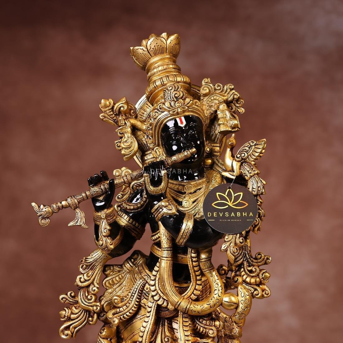 Super Fine Brass Black Colour Krishna Statue – 29.5 Inches