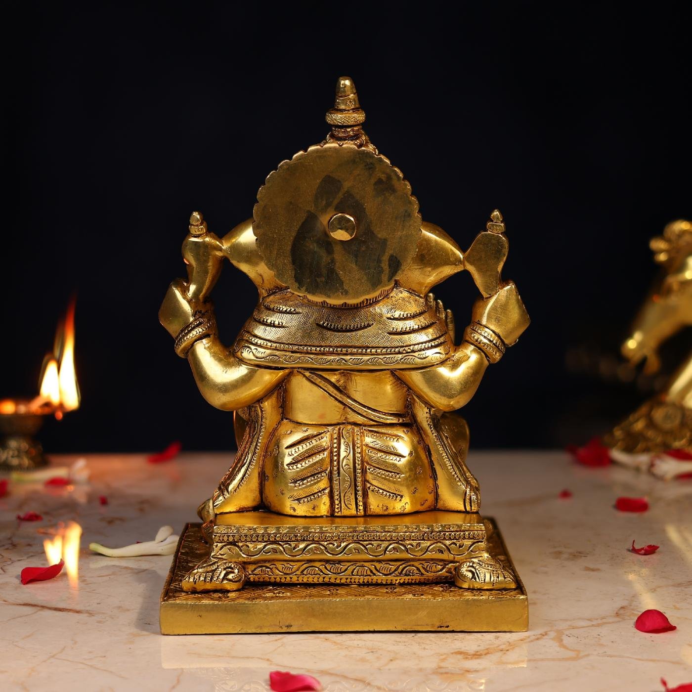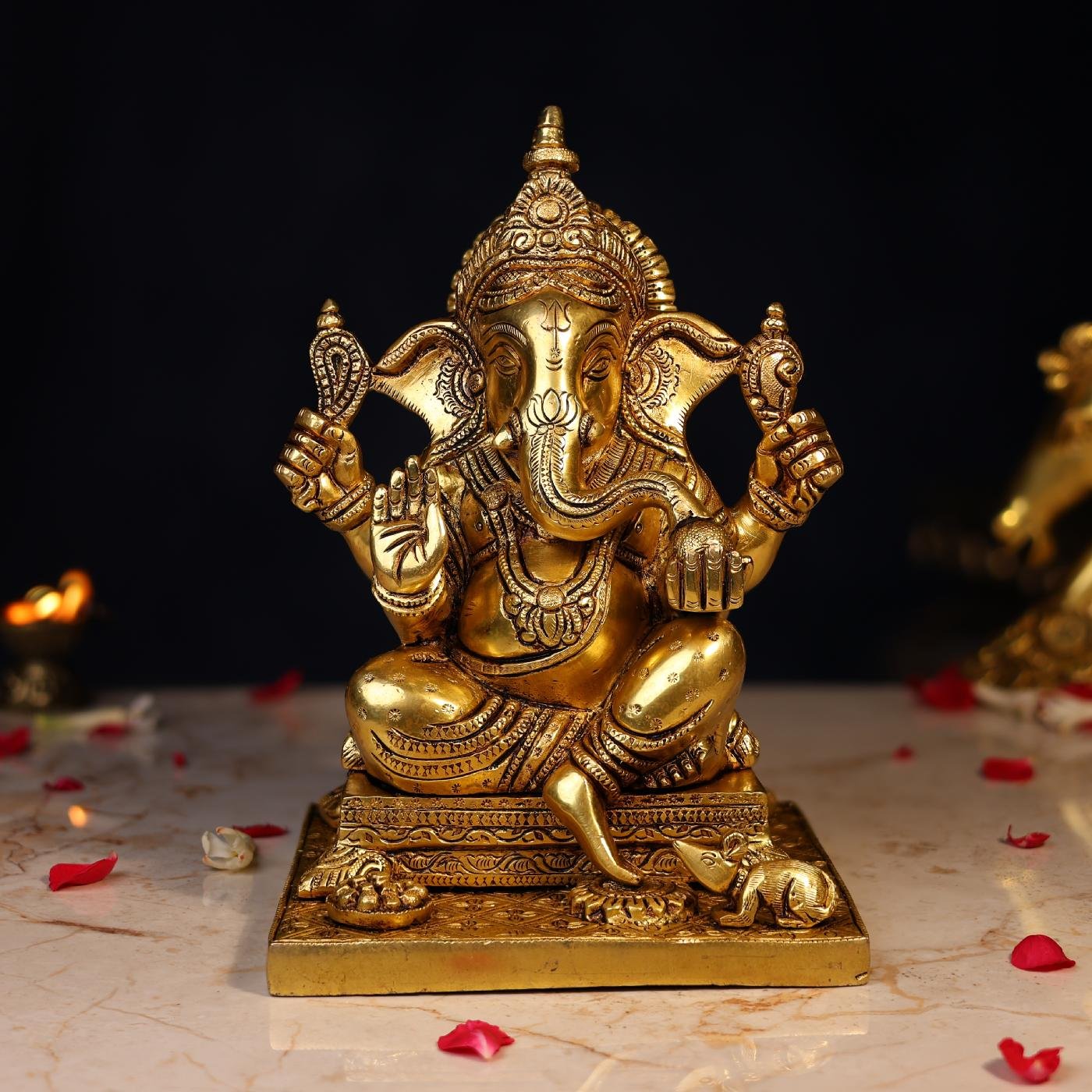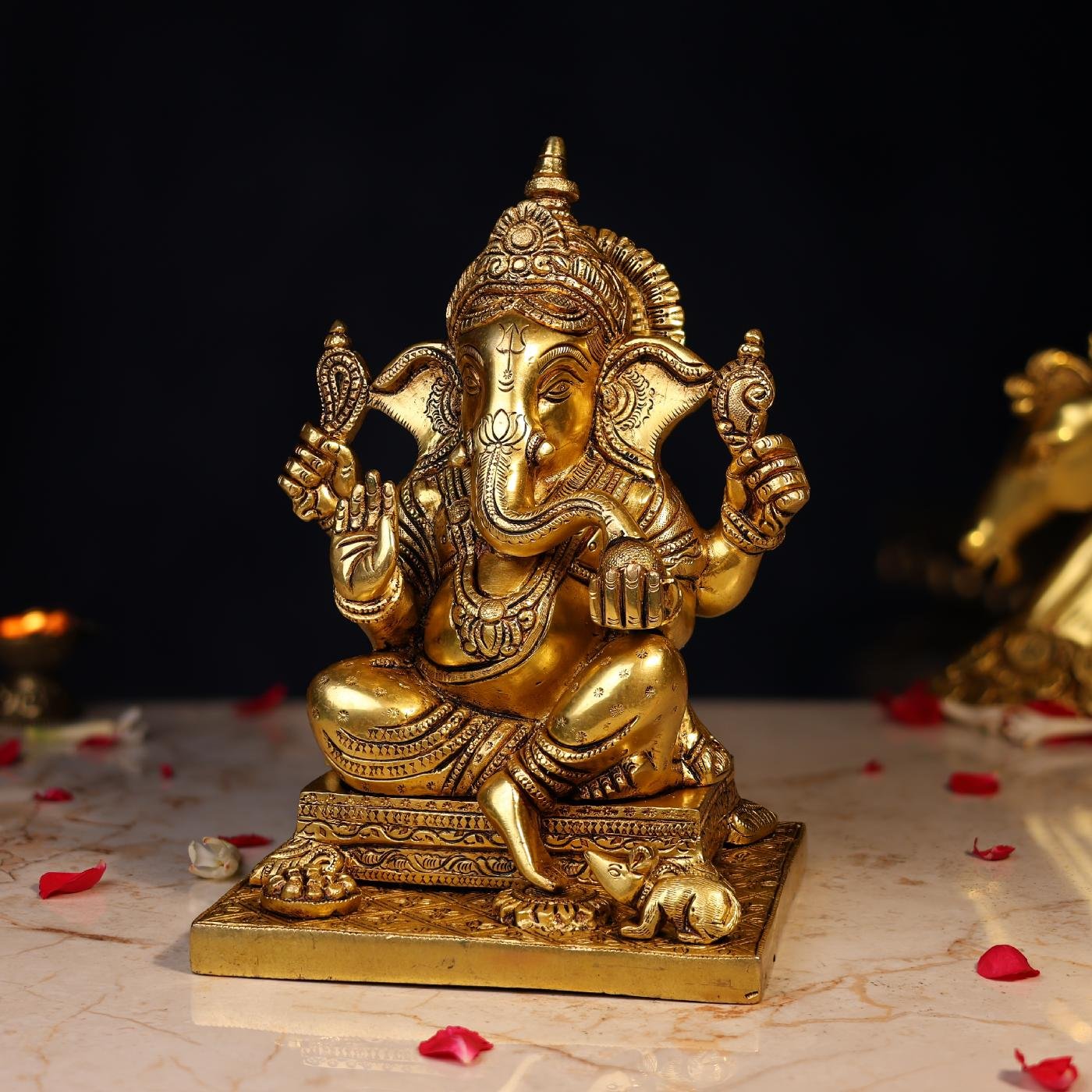 This Superfine Brass Ganesh Idol (9.5 inches) is handcrafted from pure brass with intricate detailing. Lord Ganesha, the remover of obstacles and giver of wisdom, makes this murti perfect for daily pooja, temples, or gifting. Elegant and durable, it adds divine grace and prosperity to any sacred space.