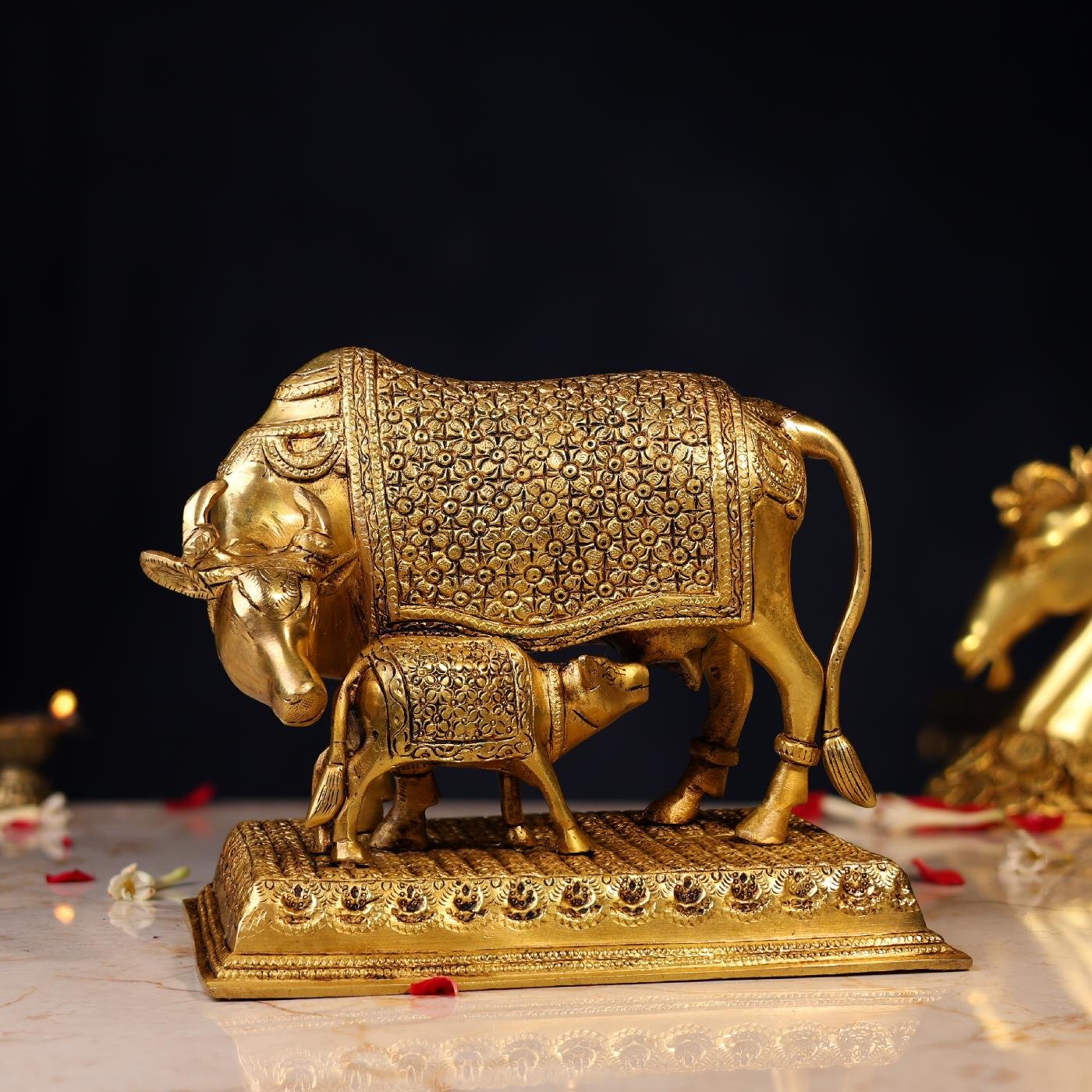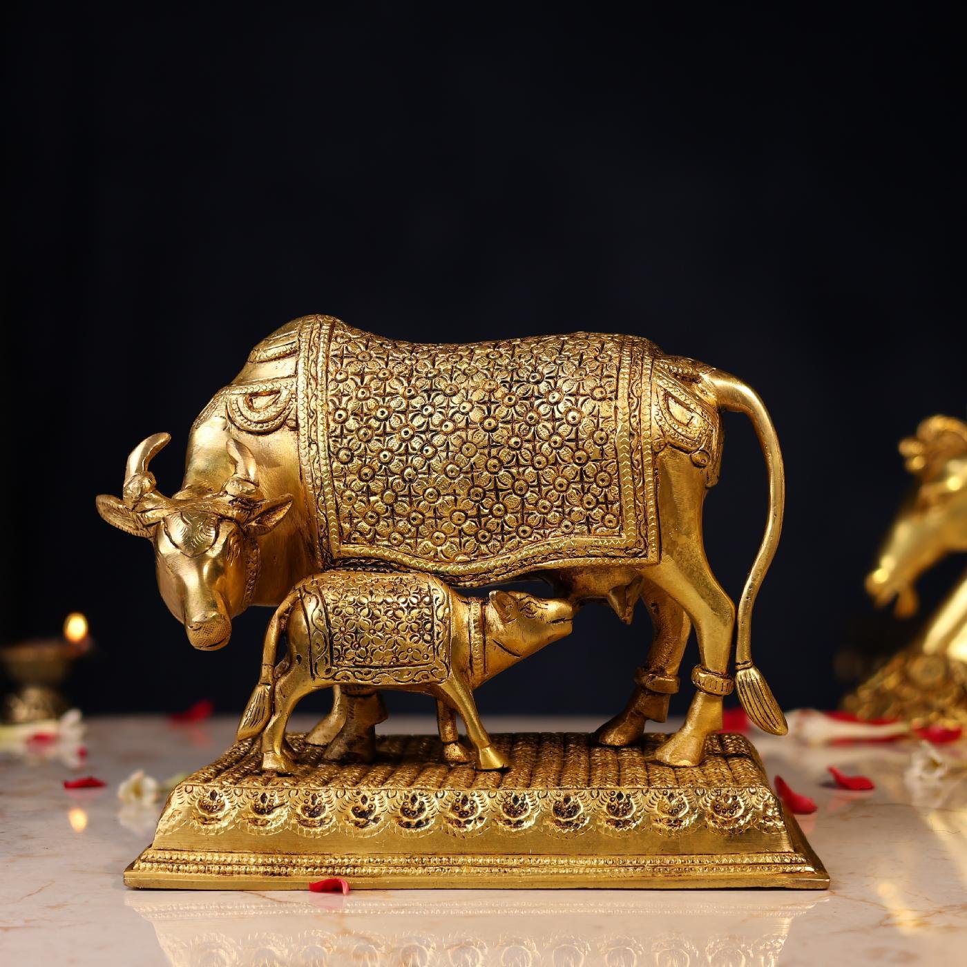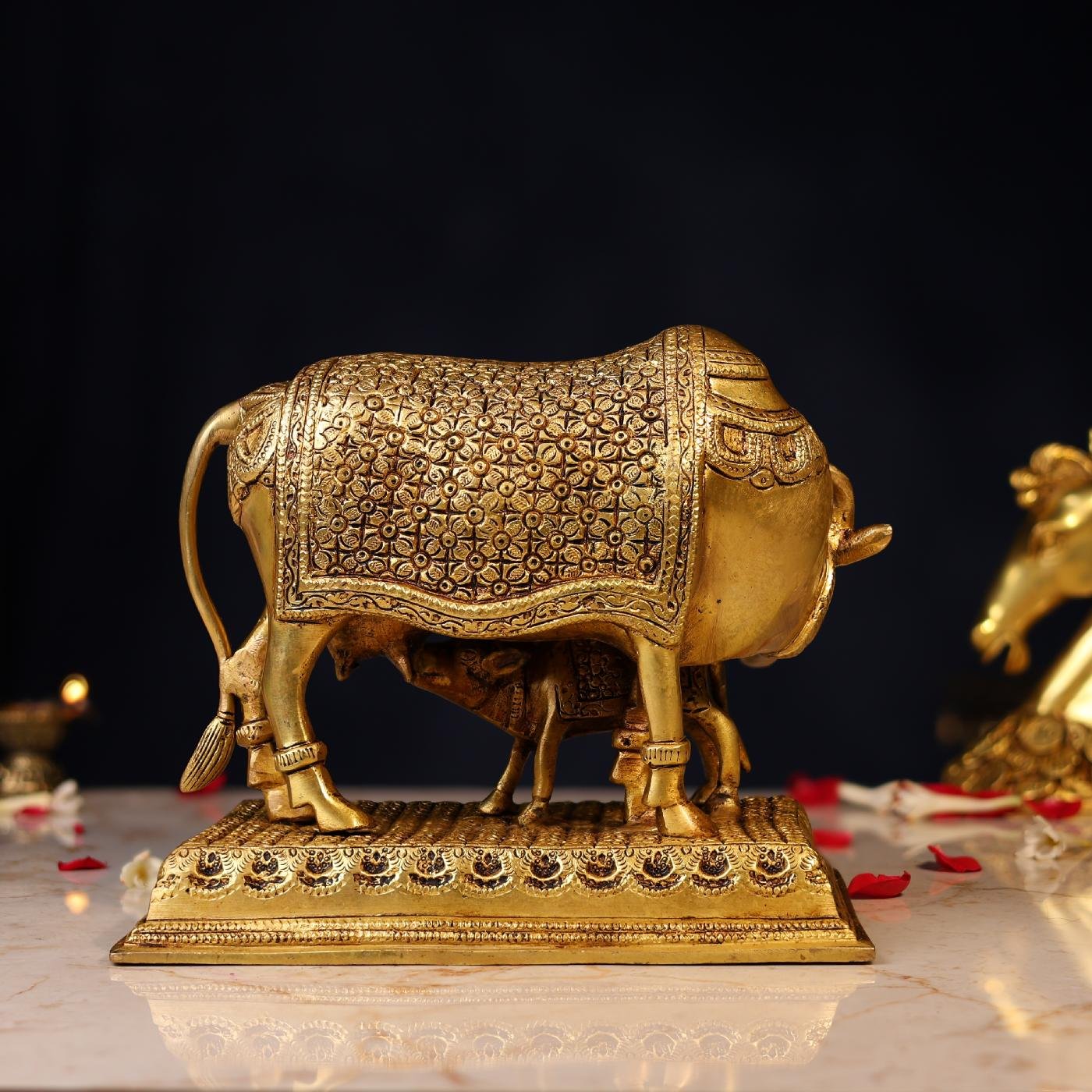 Superfine Brass Kamadhenu with Calf Height 8 Inch