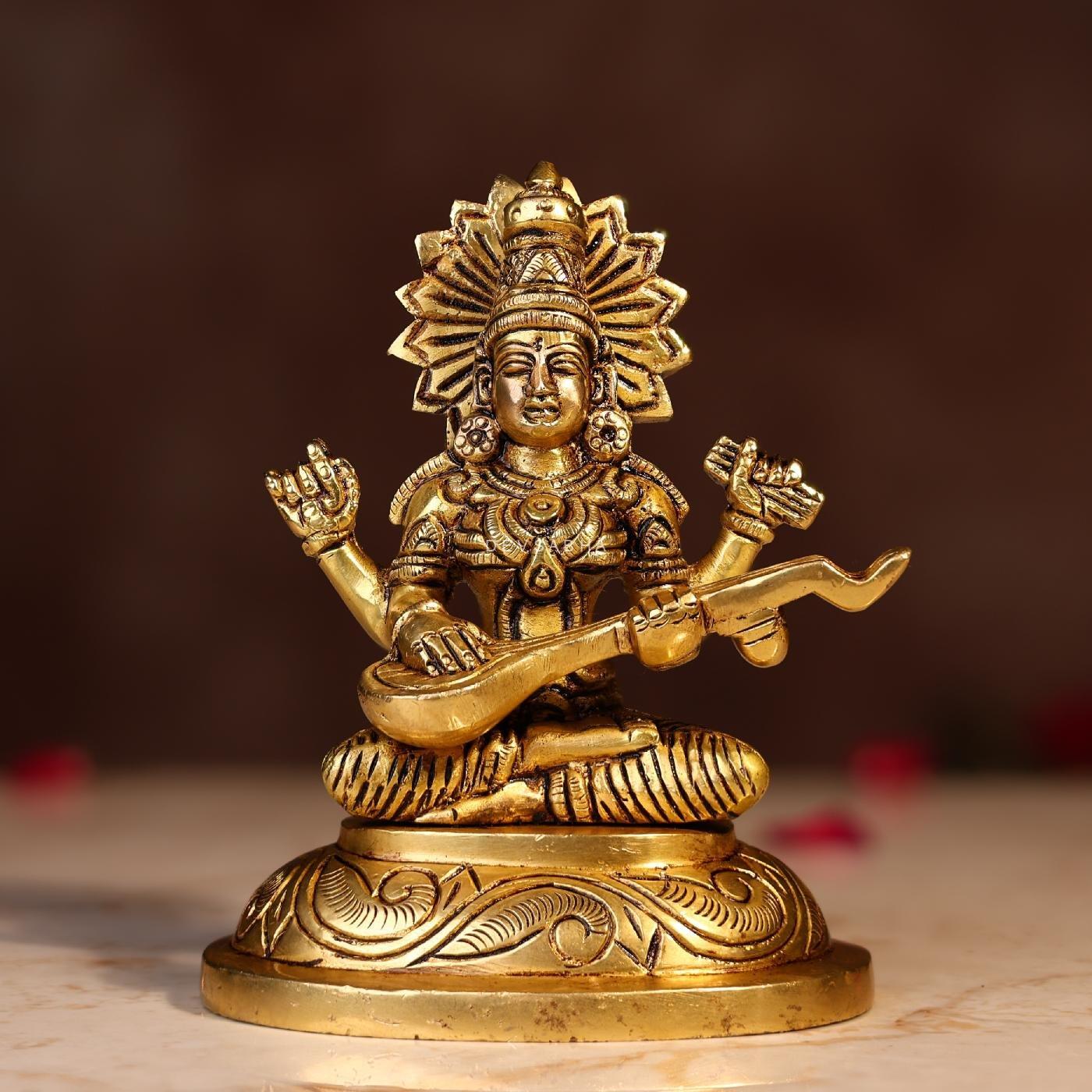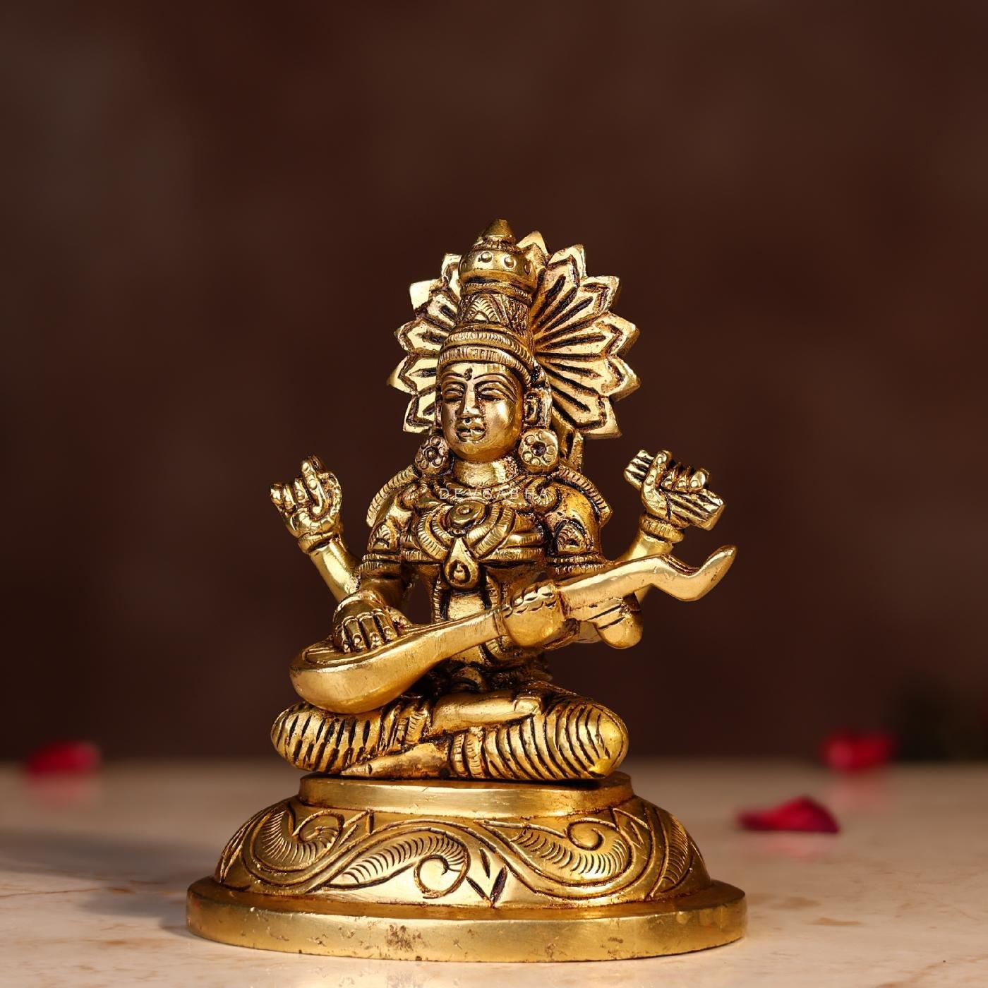This authentic brass Saraswati murti is a timeless addition to your pooja space, bringing purity, wisdom, and spiritual elegance.