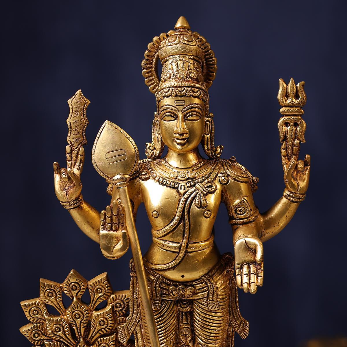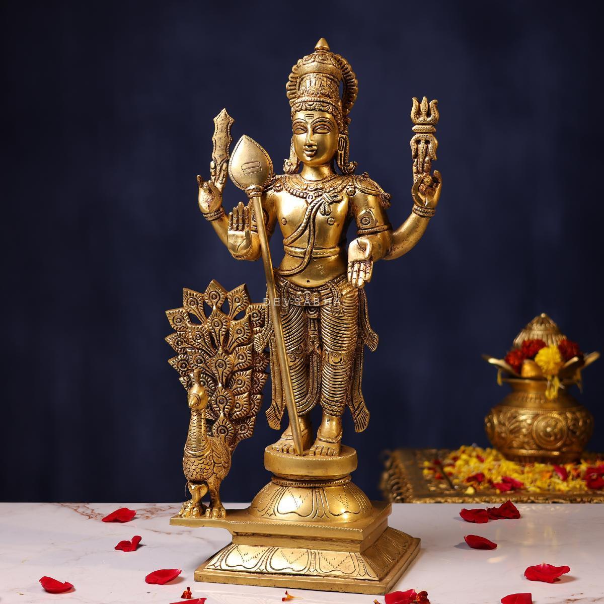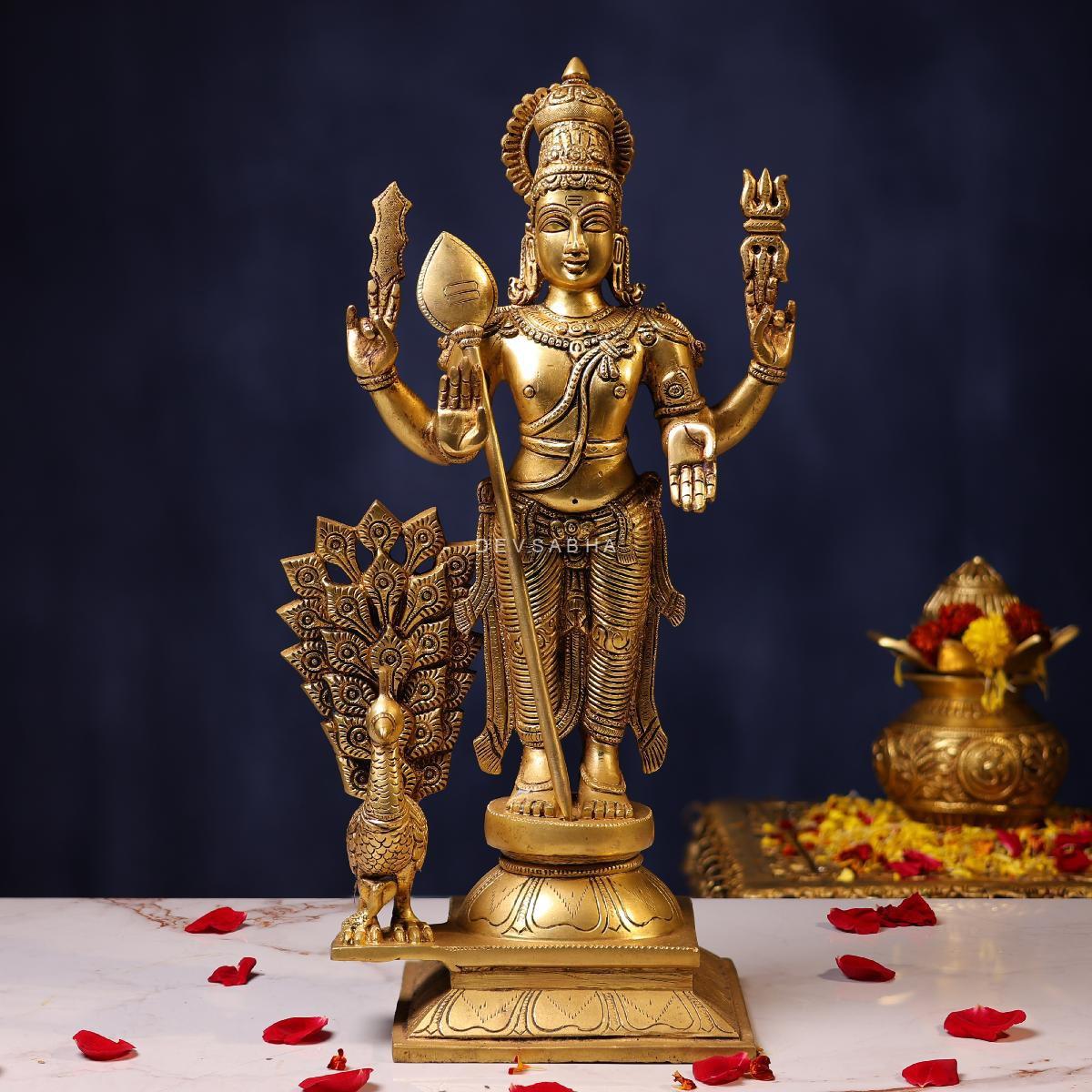 Bring home divine strength, victory, and spiritual grace with this exquisitely crafted Superfine Elegant Brass Lord Murugan Idol. Standing at 18.5 inches, Lord Murugan (Kartikeya) represents courage, wisdom, and protection, making this idol ideal for pooja rooms, temples, and sacred spaces.